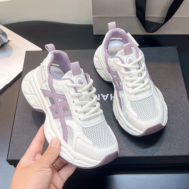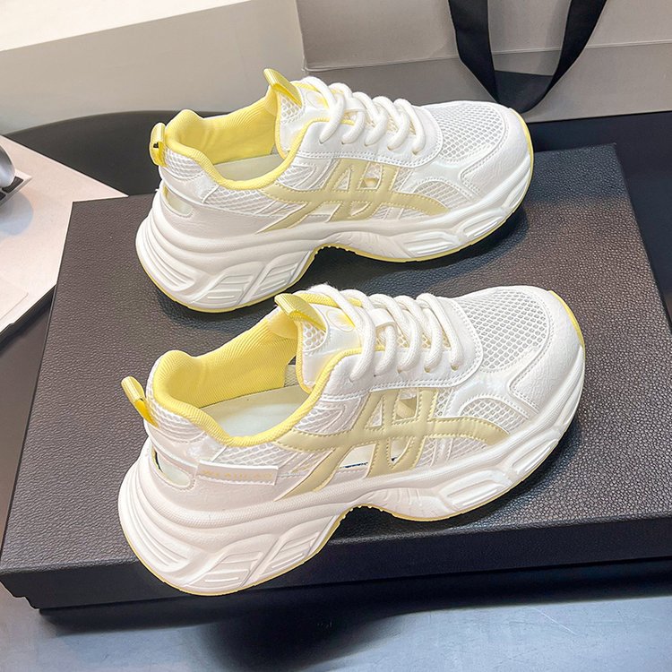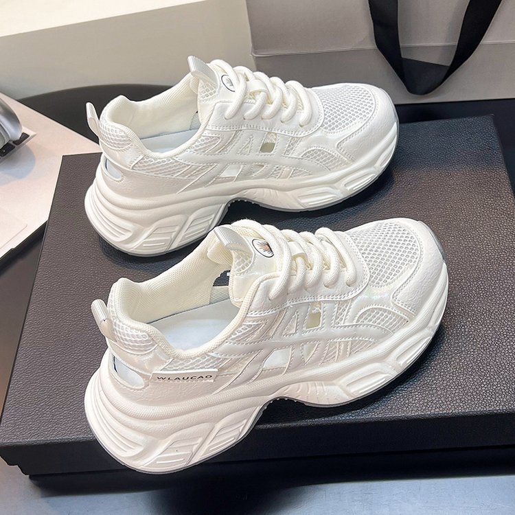 女性用厚底ダッドシューズ 2025年夏新作 メッシュ 通気性 カジュアルシューズ 万能 軽量 スポーツシューズ