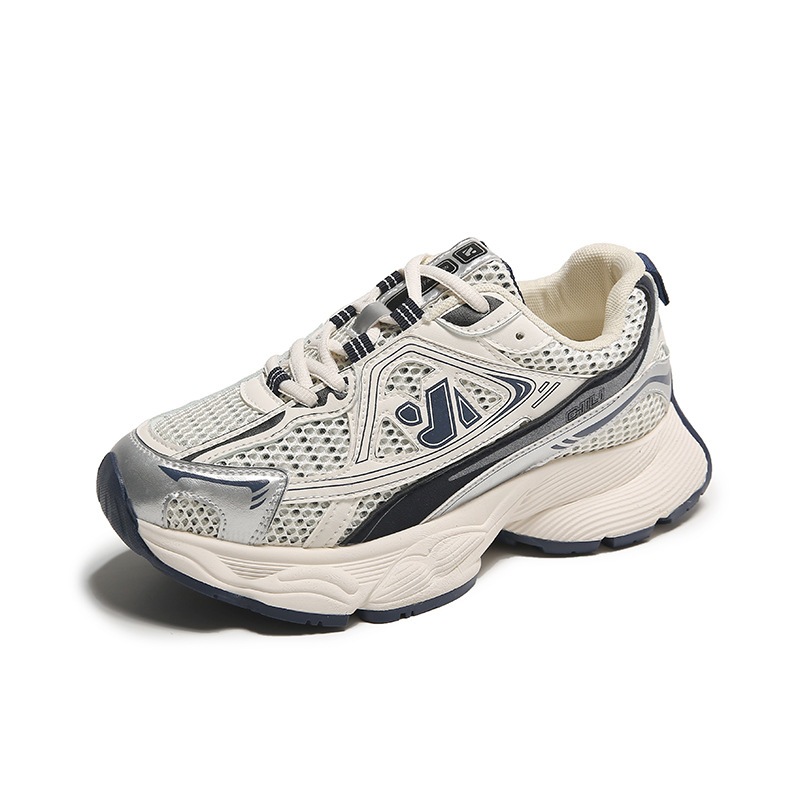 パリで人気の女性用ダッドシューズ2025年夏新作厚底で万能なメッシュ素材で通気性抜群のホワイトカジュアルスポーツシューズ