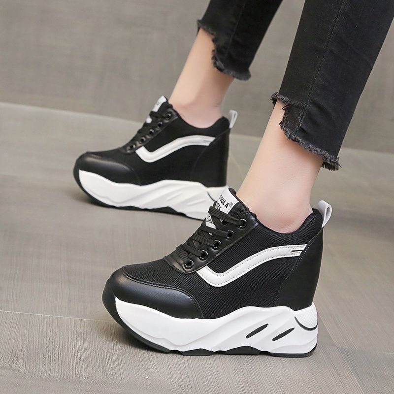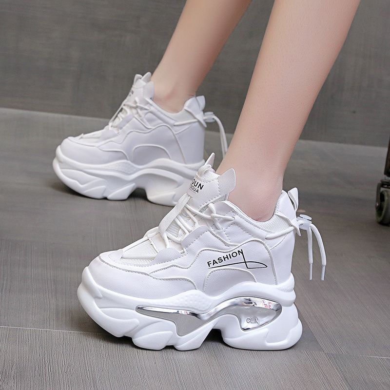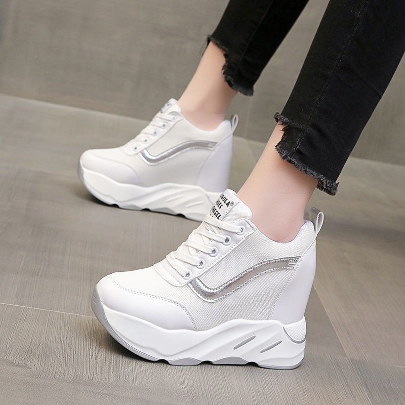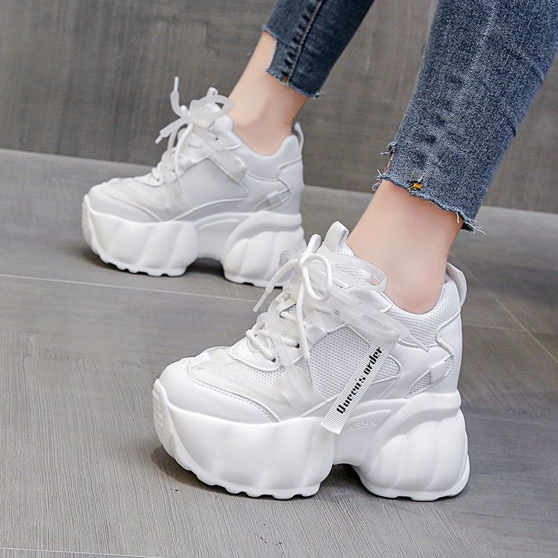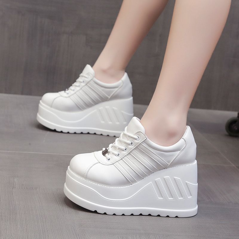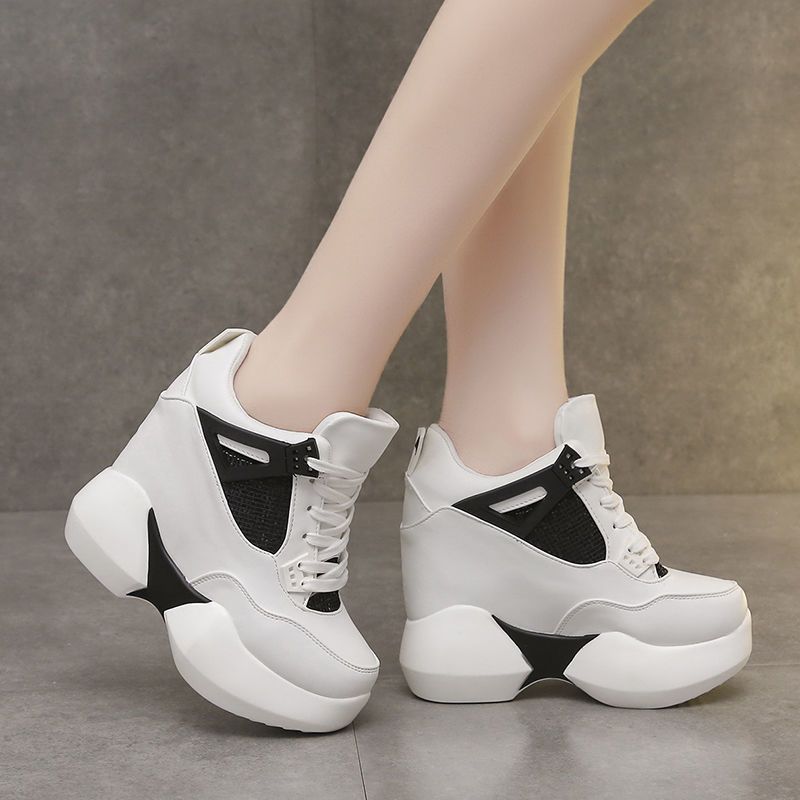 原宿中空通気性センチメートルハイヒールレディースシューズレースアップウェッジヒール韓国版オールマッチホワイト厚底スポーツシューズトレンド
