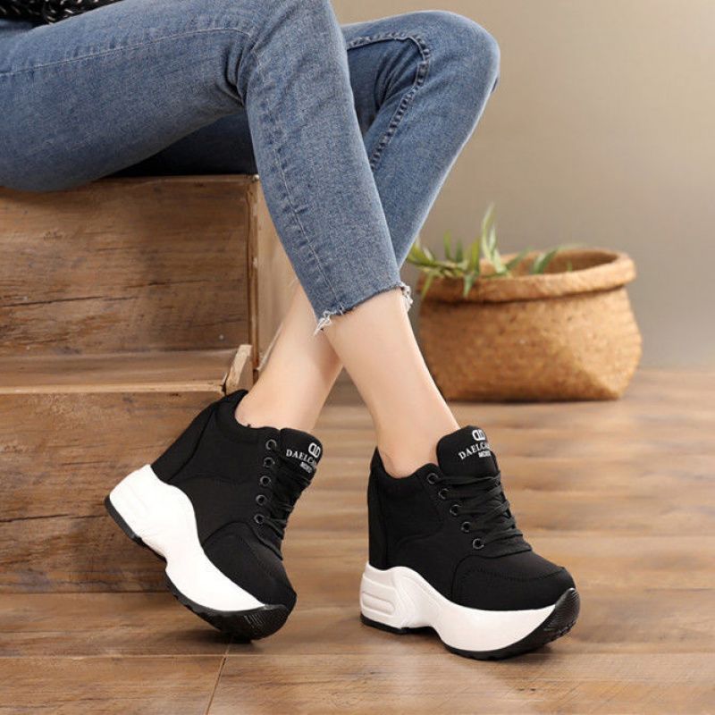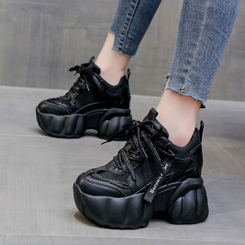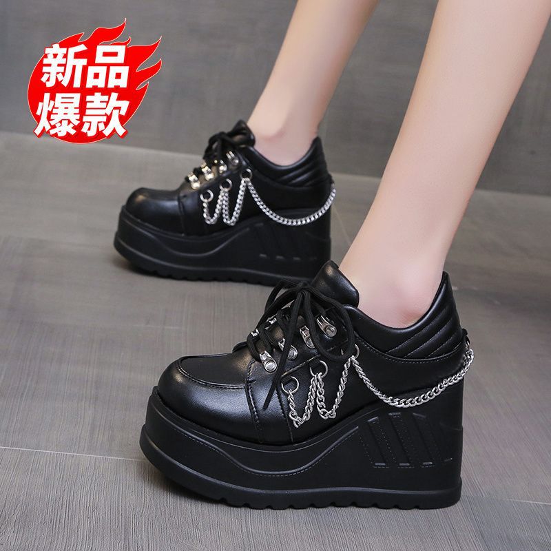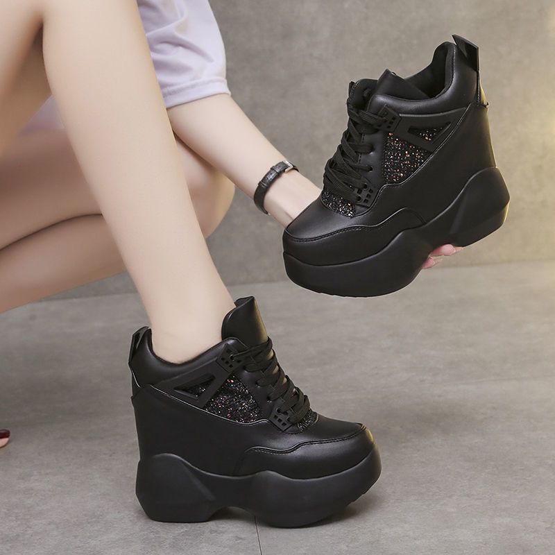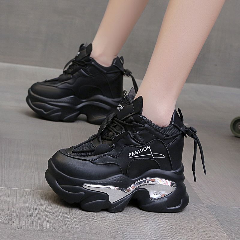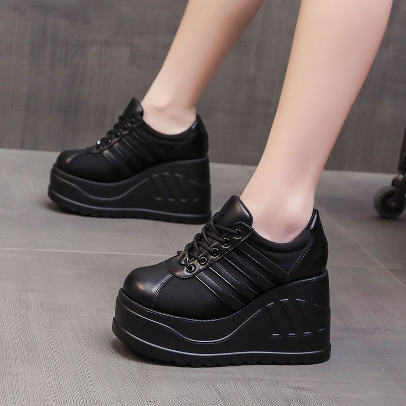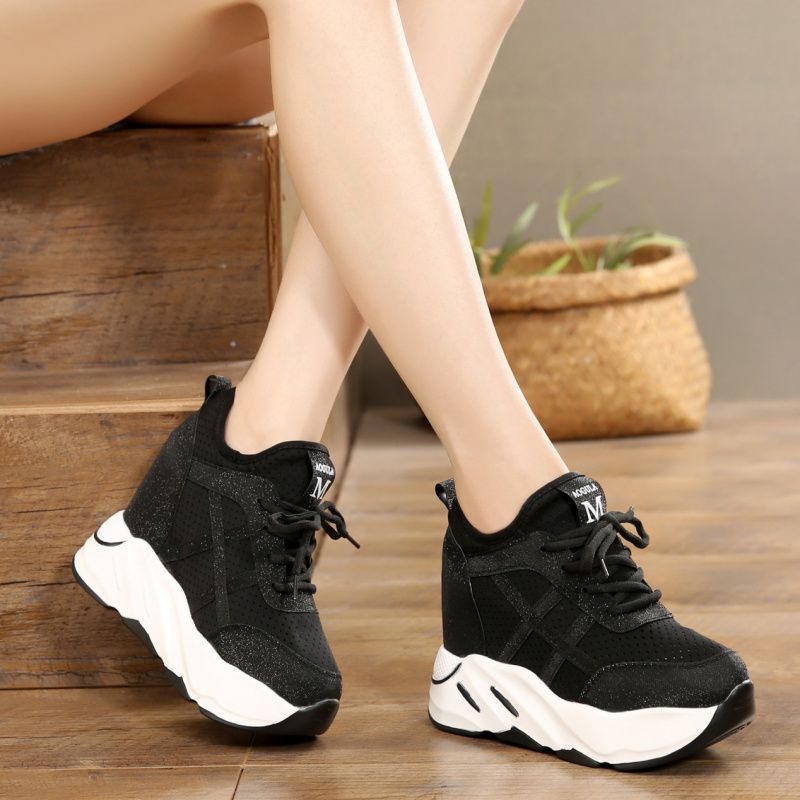 原宿中空通気性センチメートルハイヒールレディースシューズレースアップウェッジヒール韓国版オールマッチホワイト厚底スポーツシューズトレンド
