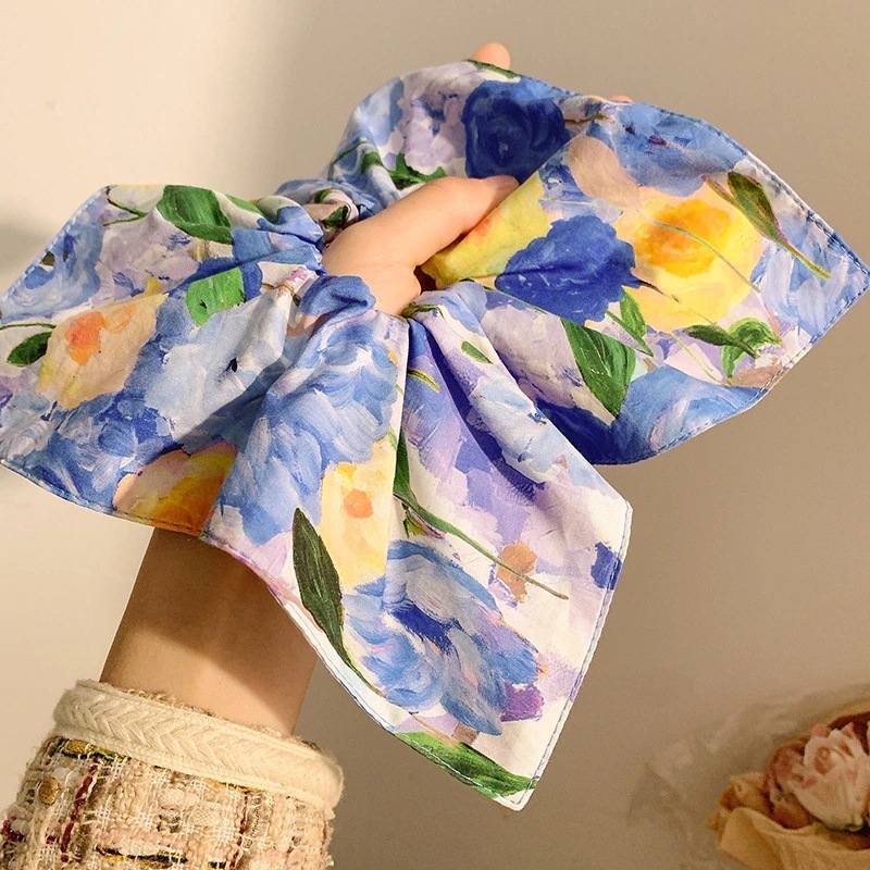 油絵スタイルの花の正方形のスカーフ女性のための大きなコロンヘアバンド髪正方形のヘッドバンドを結ぶために絶対に美しい正方形のヘアアクセサリー
