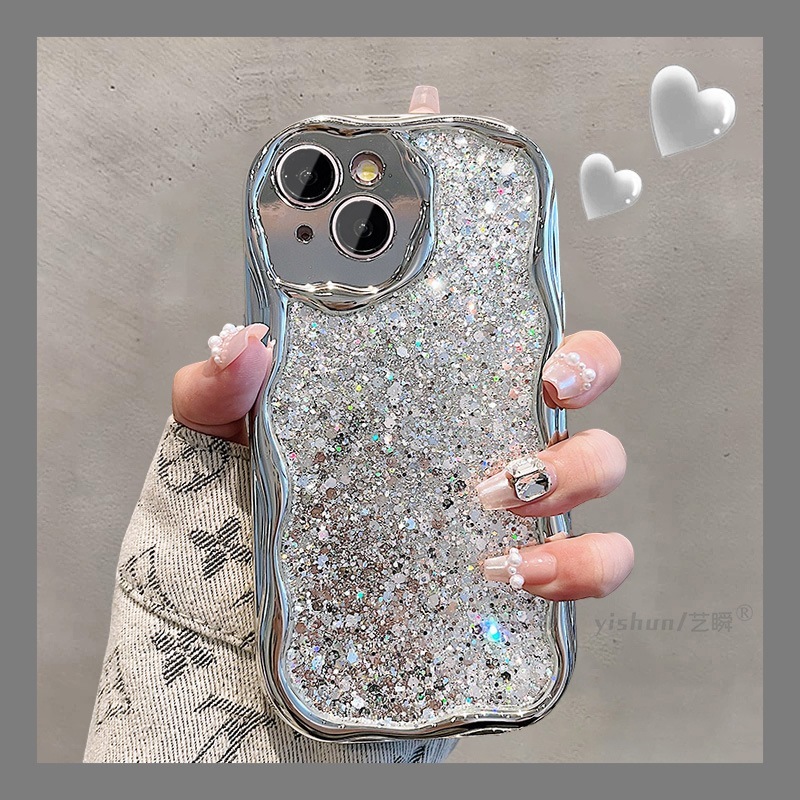 キラキラ輝くスパンコールで覆われたApple 16ProMaxの携帯電話ケースはiPhone14に適した高級12ライトの高級パールチェーン