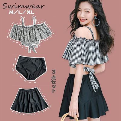 新品更新 水着 レディース 体型カバー タンキニ 紫外線カット パッド付き ショートパンツ スカート 小胸 セパレート ビキニ 3点セット ホルターネック バスト 盛れる 水着 女の子 女性 ママ水着