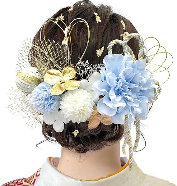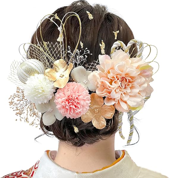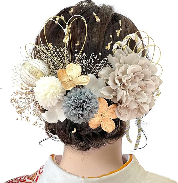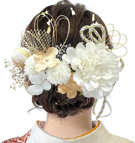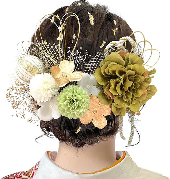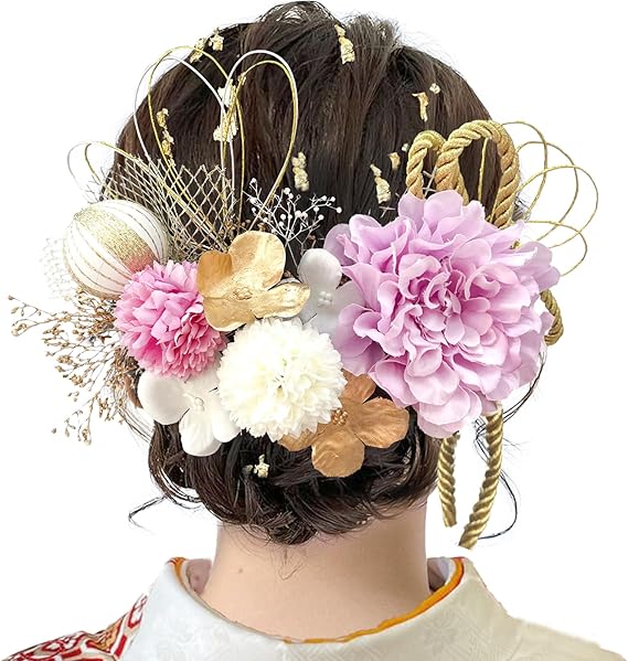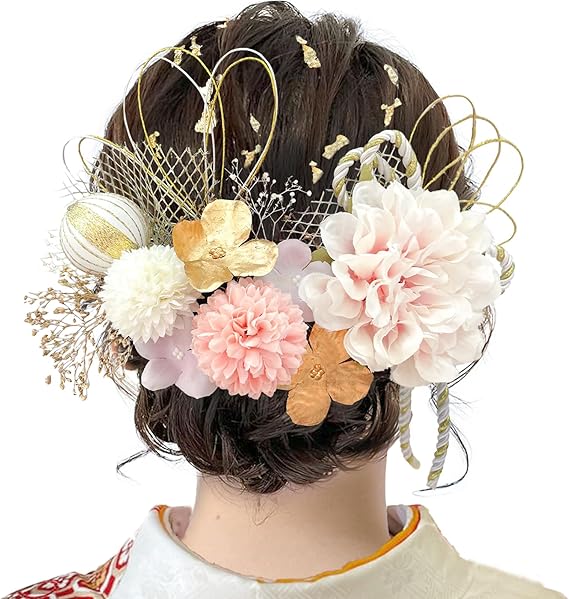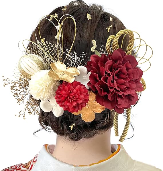 JZOON8色展開 ドライフラワー 髪飾り ダリア 造花飾り 和玉 赤 ヘアアクセサリー 成人式 ゴールド 水引 ヘッドパーツ あじさい 振袖 着物 卒業式 七五三 浴衣 袴 結婚式 かすみ草 和装 造花 手作