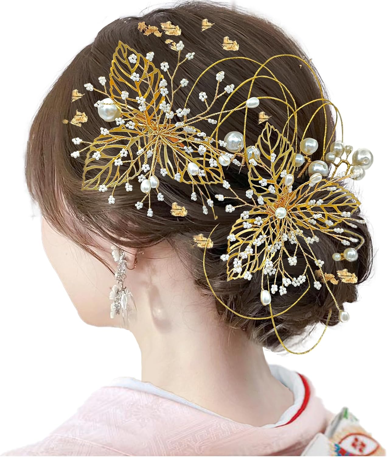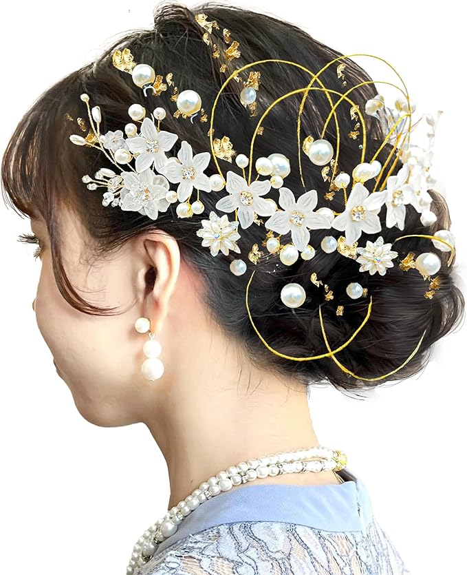 JZOON成人式 結婚式 浴衣 髪飾り ヘアアクセサリー かんざし ヘッドドレス 人気 成人式 水引 金箔 銀箔 パール 和服 七五三 卒業式 入学式 結婚式 発表会 着物 振袖 袴 結納 27点セット