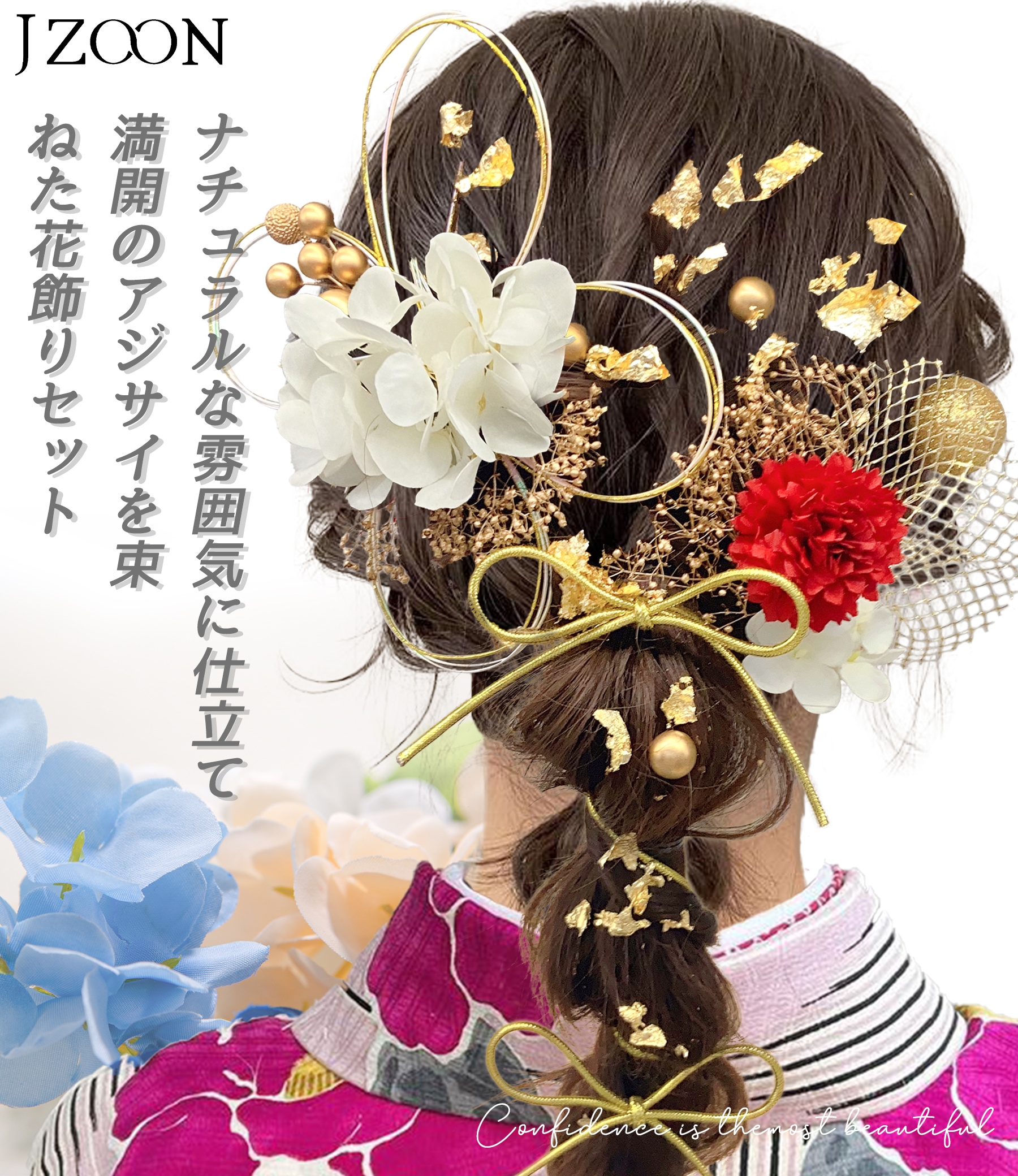 JZOON髪飾り20点セット 【10色展開】 成人式 髪飾り 花 ドライフラワー 七五三 浴衣 袴 着物 振袖 和装 卒業式 結婚式 全10選