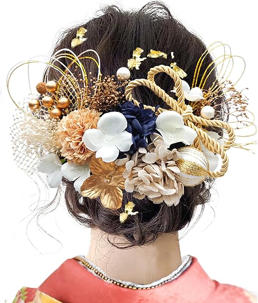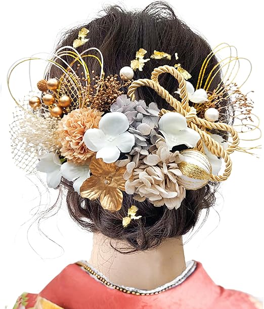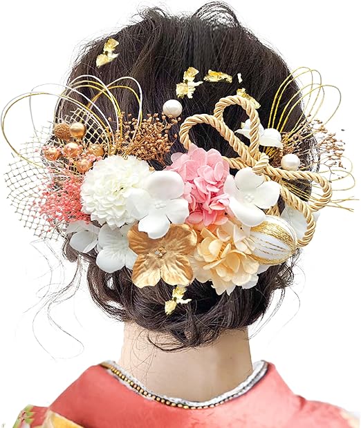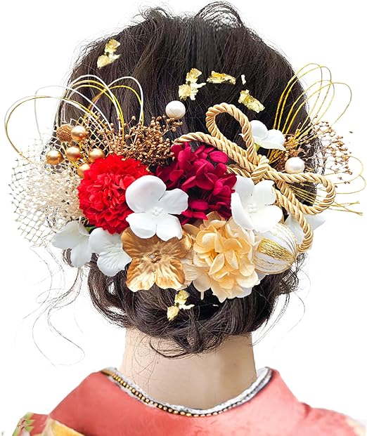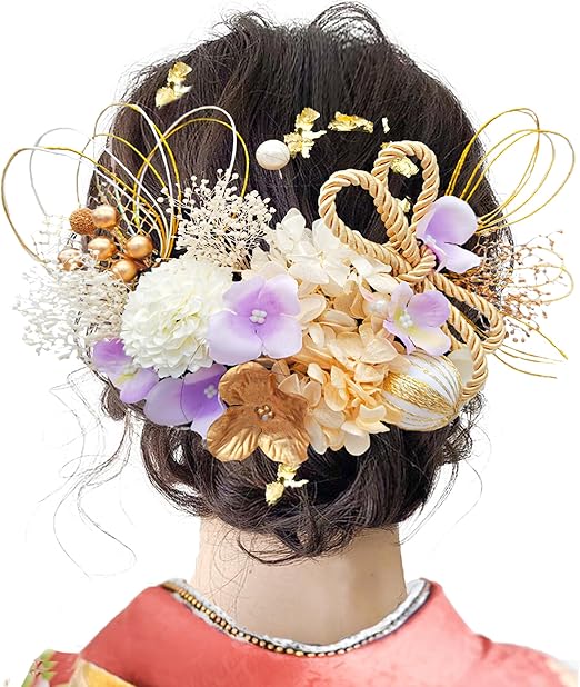 JZOON8色展開 成人式 髪飾り 水引 振袖 着物 卒業式 七五三 浴衣 袴 結婚式 ドライフラワー 造花飾り 和玉 ヘアアクセサリー かすみ草 和装 造花 手作り