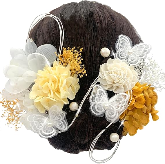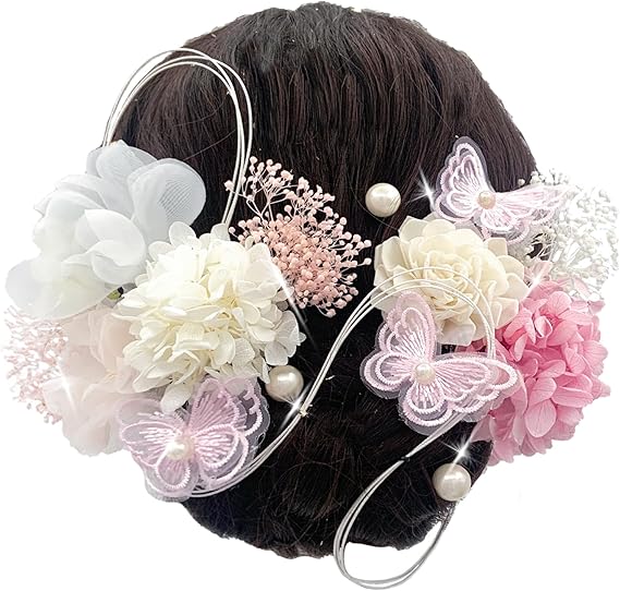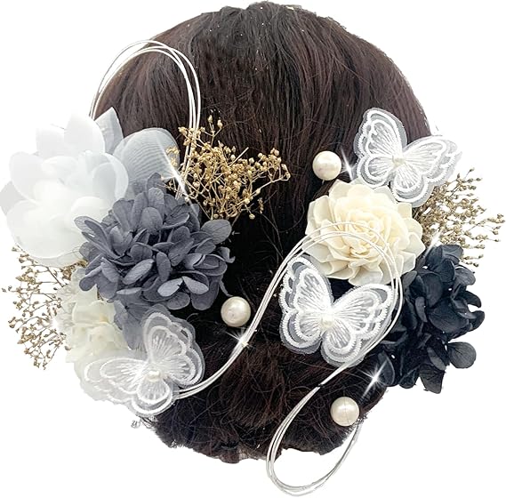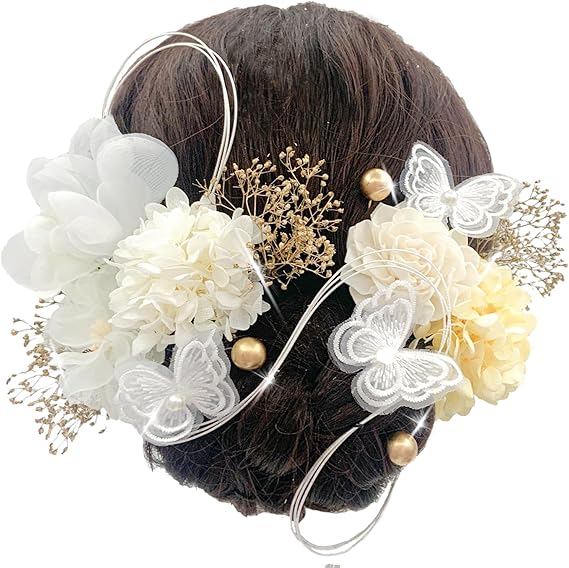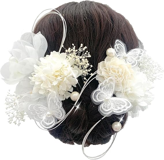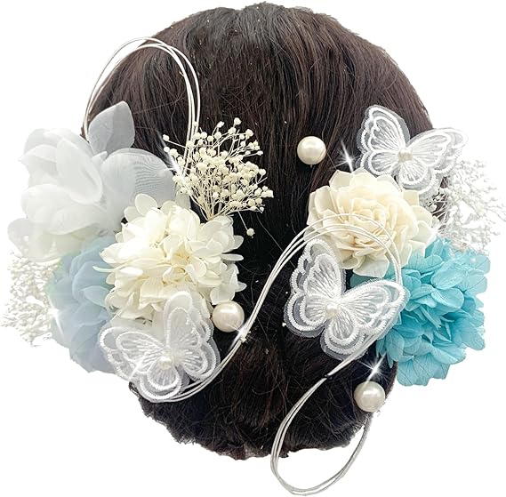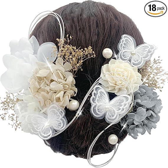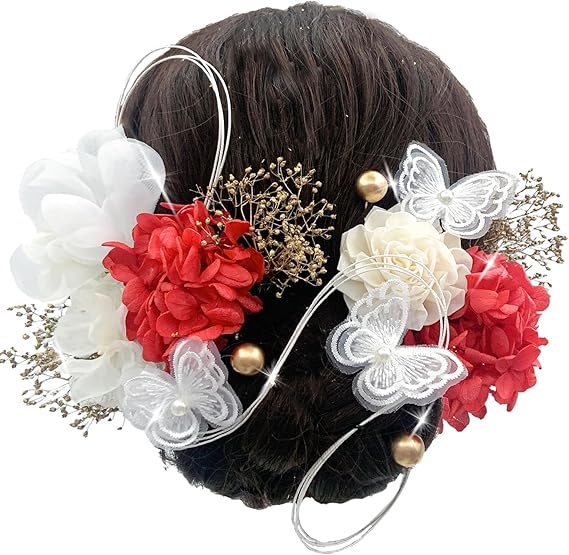 JZOON髪飾り 成人式 水引 ドライフラワー 蝶々飾り 紫陽花 ソーラーローズ 人気 ヘアアクセサリー 前撮り 振袖 卒業式 結婚式 和装 袴 着物 浴衣に ブライダル 花嫁 ホワイト 赤 18点セット