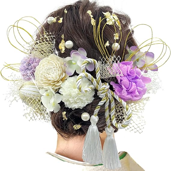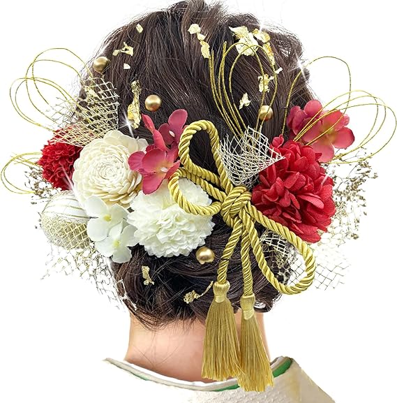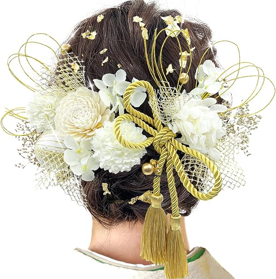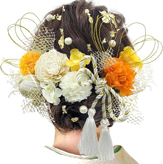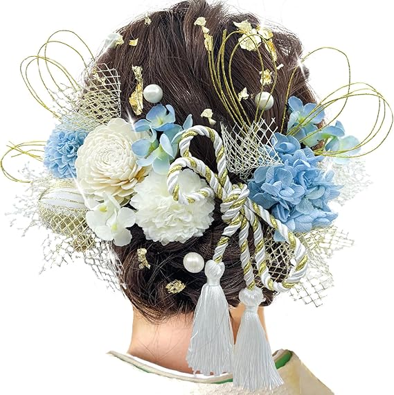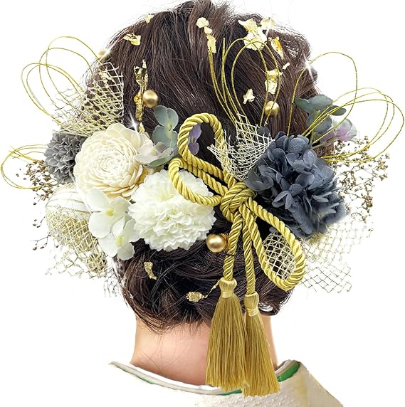 JZOON髪飾り 成人式 髪飾り 9色 ドライフラワー 造花飾り 水引 紐 ヘアーアクセサリー 和玉 かすみ草 金箔 人気 和服 着物 振袖 袴 花 浴衣 成人式 七五三 結納 卒業式 入学式 結婚式 発表会