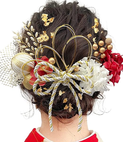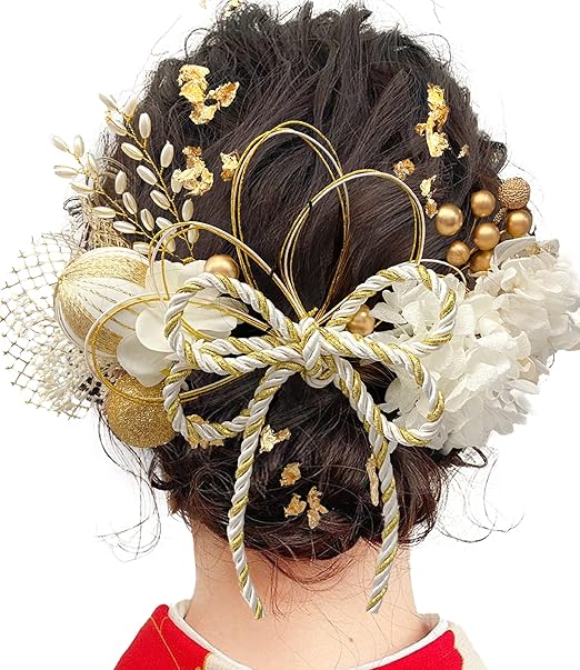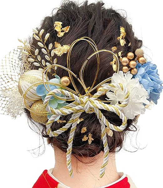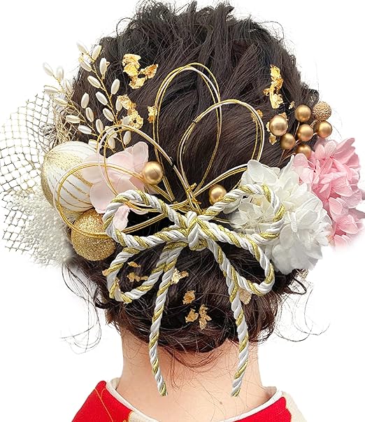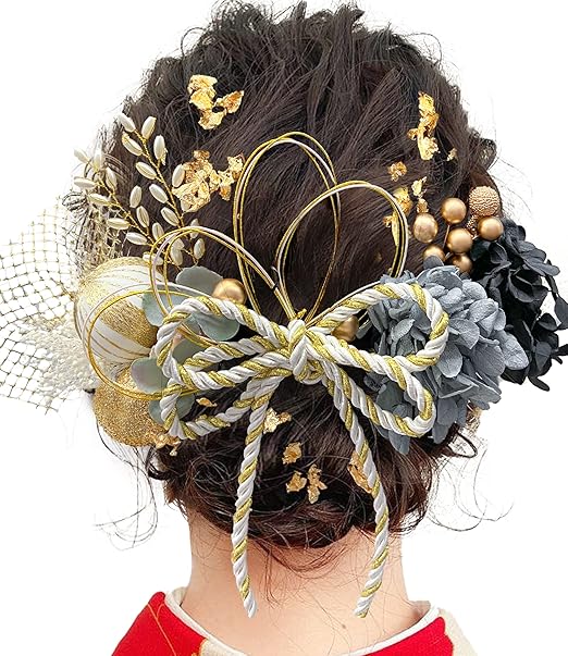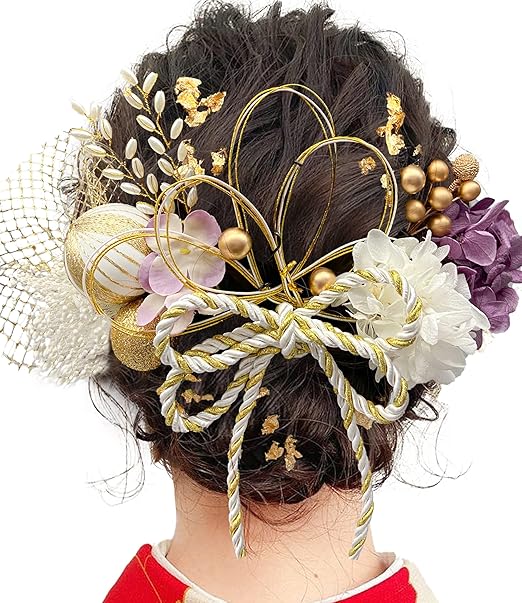 JZOON成人式 髪飾り ヘアアクセサリー アジサイ テールリード ソーラーローズ アンティークベリー パール 水引き 金箔 リボン タッセル 結婚式 ウェディング 卒業式 発表会 入学式 披露宴 卒園式 お祭