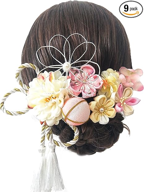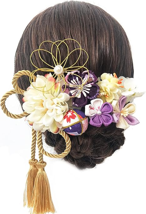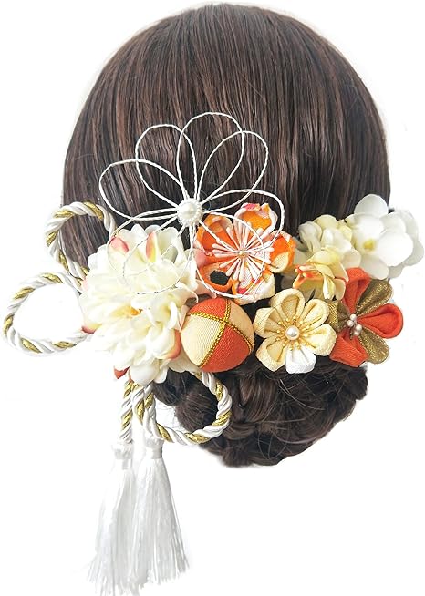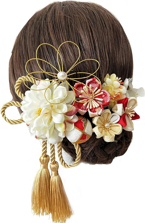 JZOON髪飾り つまみ細工 七五三 成人式 浴衣 袴 着物 振袖 和装 花 水引 卒業式 結婚式 鈴付き 手作り レディース