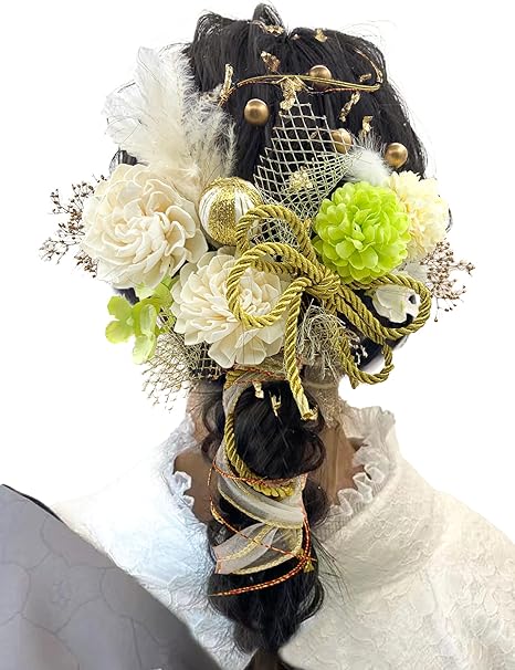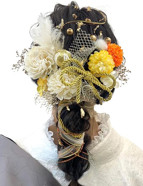 JZOON髪飾り 9色 ドライフラワー 造花飾り 水引 紐 ヘアーアクセサリー 和玉 かすみ草 金箔 人気 和服 着物 振袖 袴 花 浴衣 成人式 七五三 結納 卒業式 入学式 結婚式 発表会