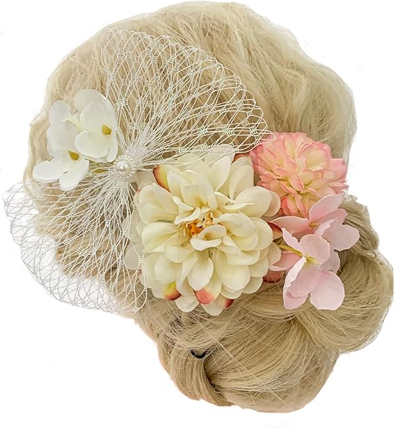 JZOONメッシュリボン 着物 和装 高級造花 振袖 七五三 浴衣 結婚式 成人式 卒業式 袴 子供 Uピン