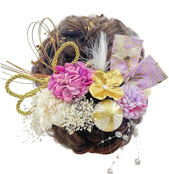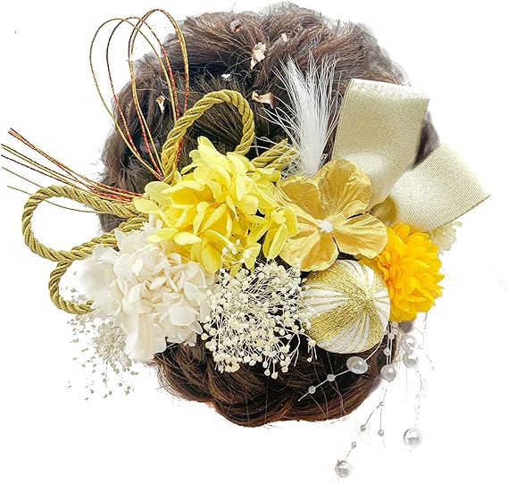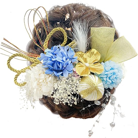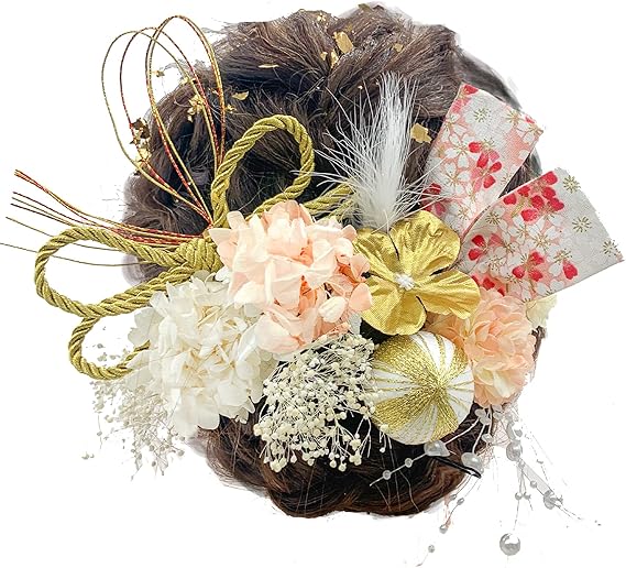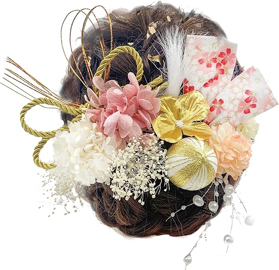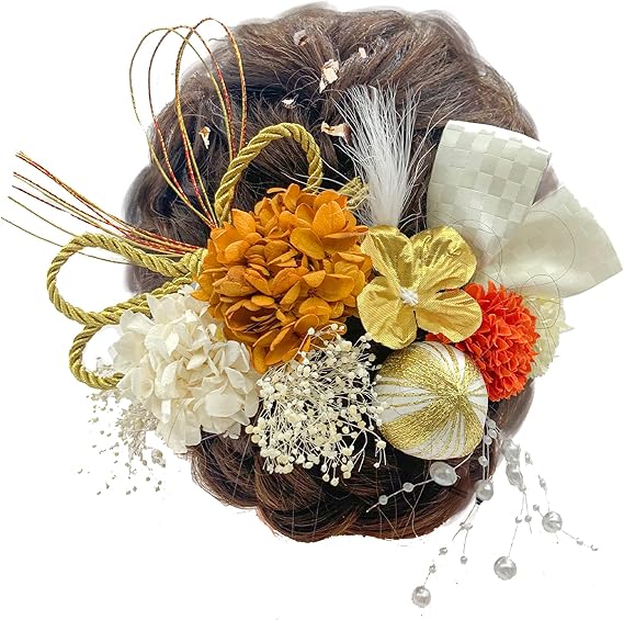 JZOON髪飾り 金箔 ドライフラワー ダリア 造花飾り 和玉 赤 ヘアアクセサリー 成人式 水引 ヘッドパーツ あじさい 振袖 着物 卒業式 七五三 浴衣 袴 結婚式 かすみ草 和装 造花 手作り 専用ケース