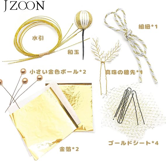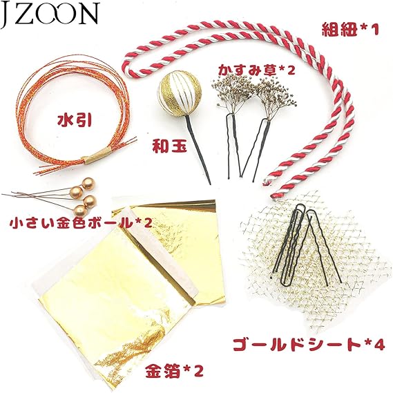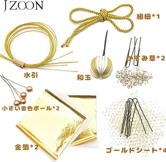 JZOON髪飾り 金箔シート かすみ草 水引 ゴールドネット 和玉 紐 髪飾り用パーツ