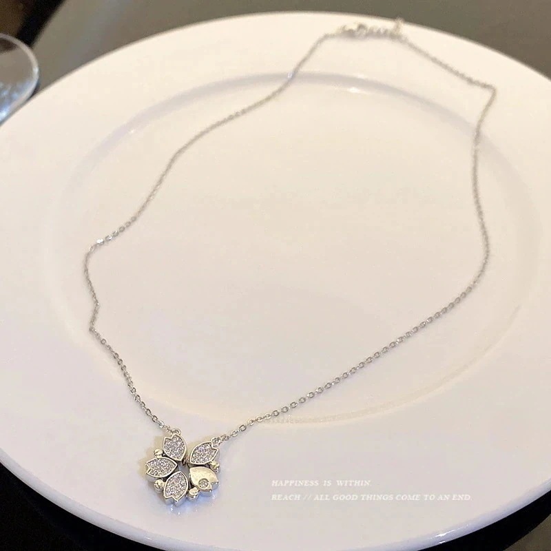 韓国ファッション ネックレス レディース 花びらはジルコン磁気吸引ペンダント鎖で飾られています