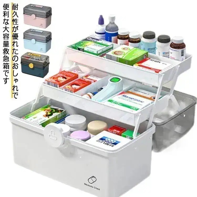 薬箱 救急箱 大容量 3層 収納ケース たっぷり 収納ボックス 工具箱 応急ボックス 透明 収納箱 取っ手付き 折り畳み 携帯便利 日用品 薬入れ 小物入れ 家庭用 緊急 防災 便利グッズ