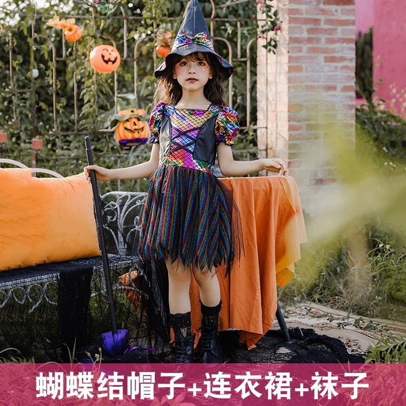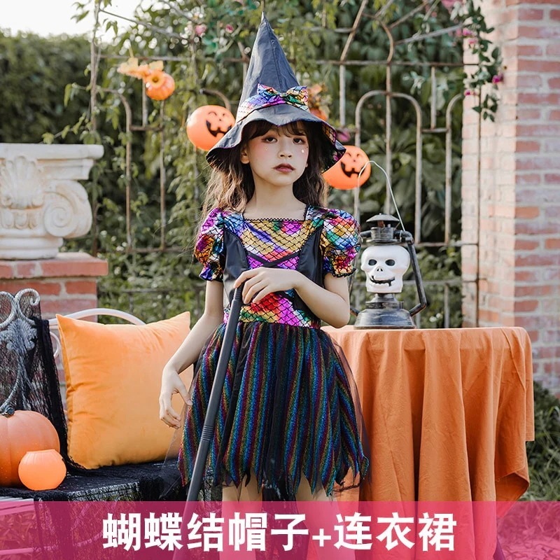 ハロウィンの子供用コスプレ衣装女の子用小さな魔女幼稚園パフォーマンス衣装魔女衣装魔術師エルフパフォーマンス衣装