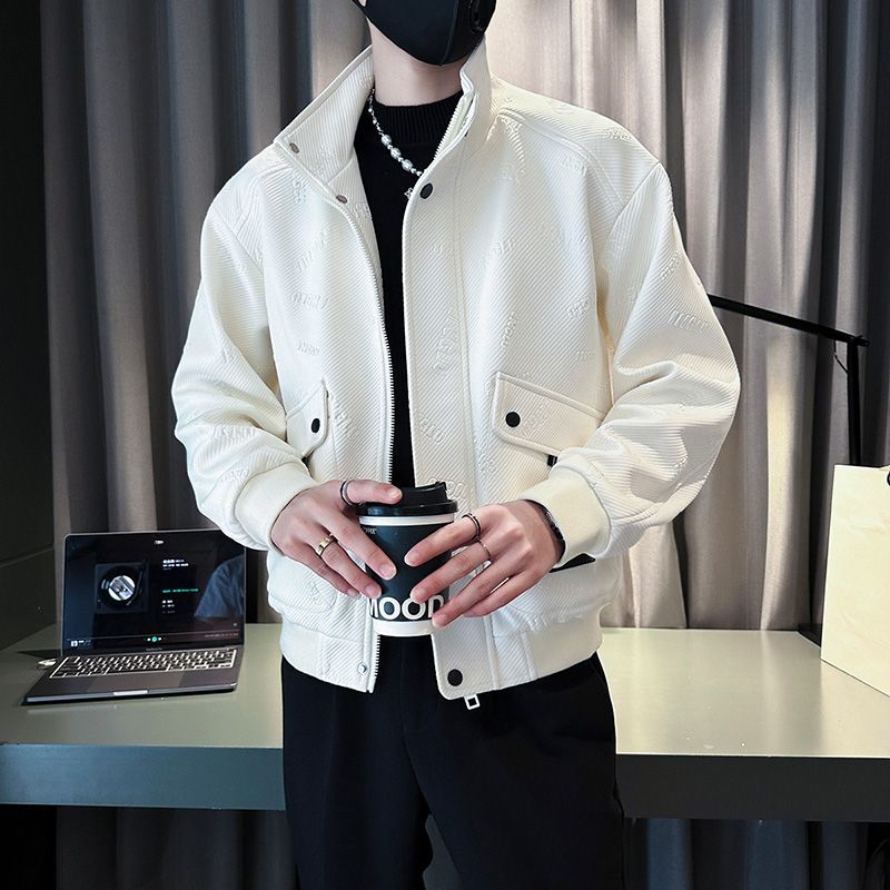 トレンチコート 韓国ファッション おしゃれ 百掛け 感 ジャンバー ニッチデザイン 質感 気質 ベースボールジャージ 流行り メンズ トップス ジャケット