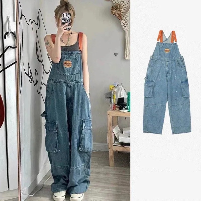 新作ファッション絞り染カーゴパンツ レディー大きい カジュアル百掛けオーバーオールデニム ストレートロングパンツ