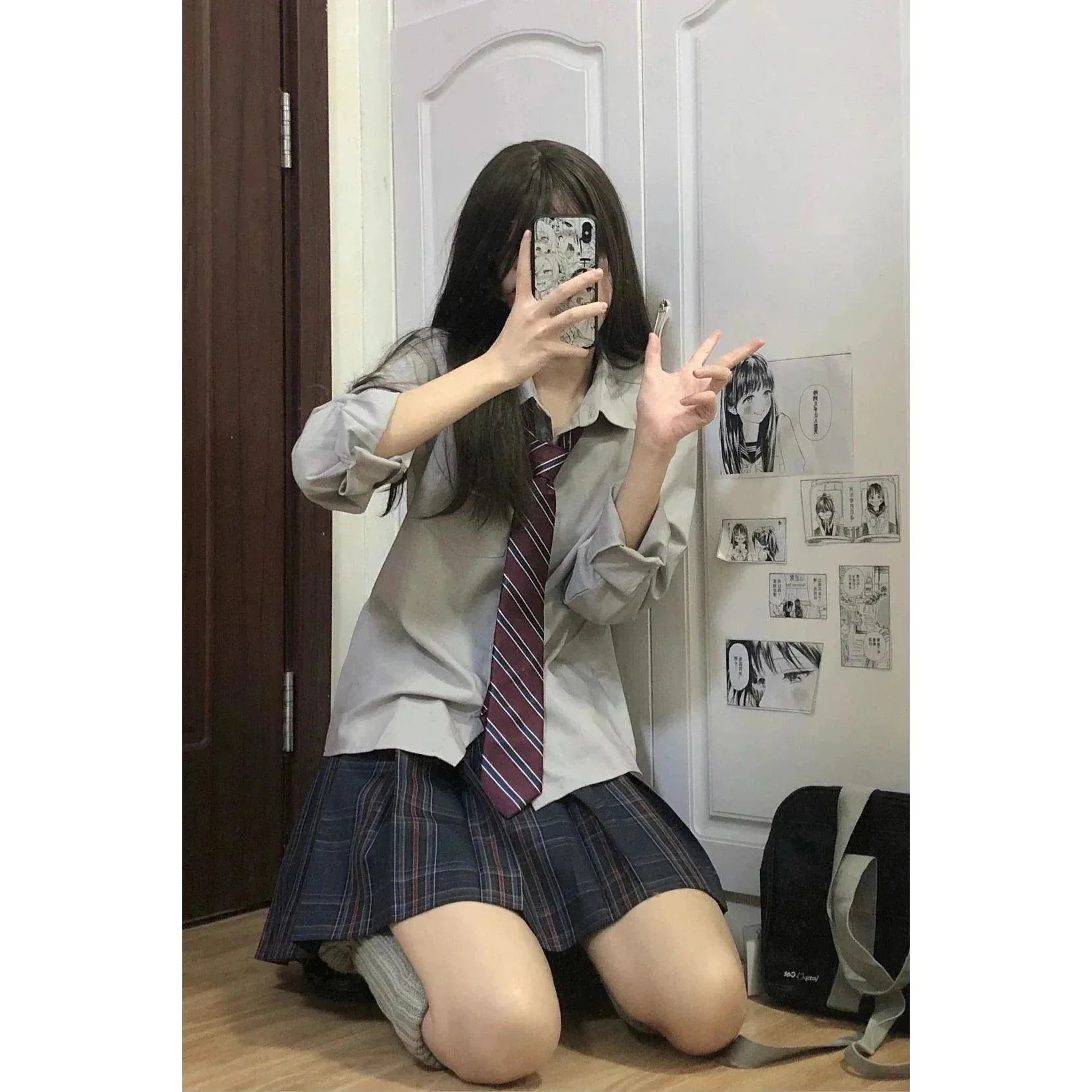 シャツ JK制服長袖トップス 夏純色シャツ+ネクタイ トップス シースルートップス ブラウス