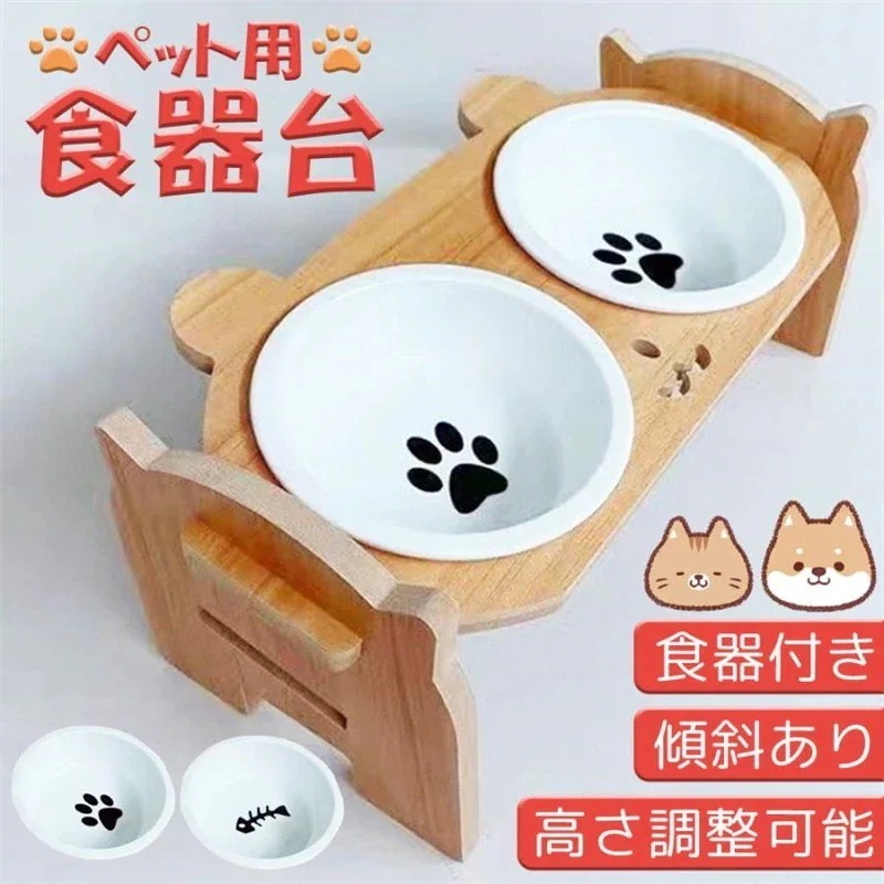 猫 食器 フードボウル 陶器 猫の食器 餌入れ ペット 猫用 犬 皿 ご飯 餌皿 スタンド 斜め 負担軽減 食器台 早食い防止 吐き戻し 水