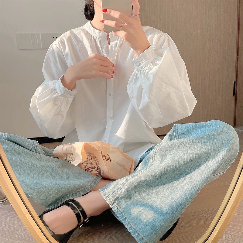クリームピンクの長袖シャツレディース2025春と秋の新しいゆったりシャツフレンチレトロスイートラウンドネックトップ