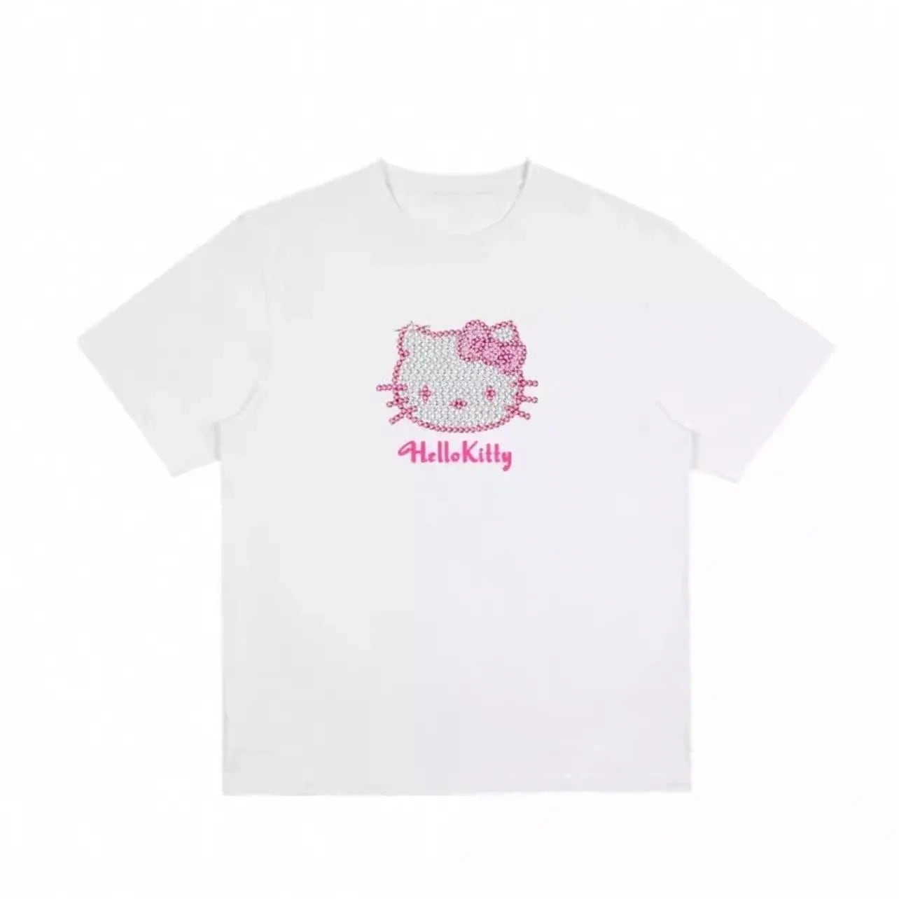 【2枚購入で 200 OFF!】Tシャツ キティちゃん ストーン キラキラ 半袖Ttシャツ ティーシャツ 無地 キャラクター 半袖 トップス カジュアル レディース