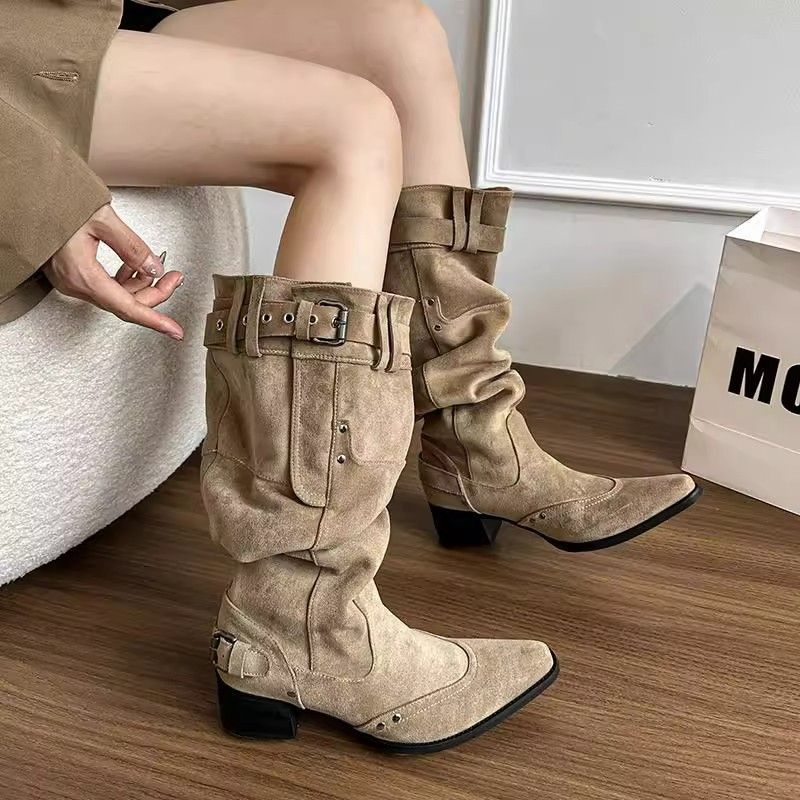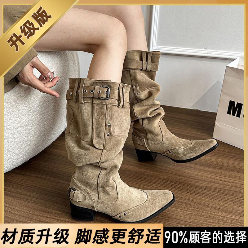 長靴レディース新作カーキのスパイクブーツ子供の太さとスリムなマーチンスタッズブーツ
