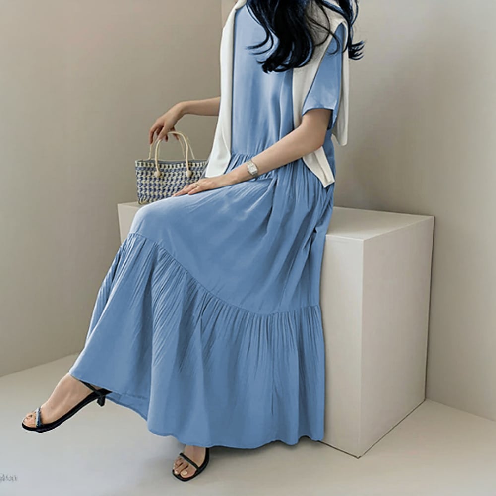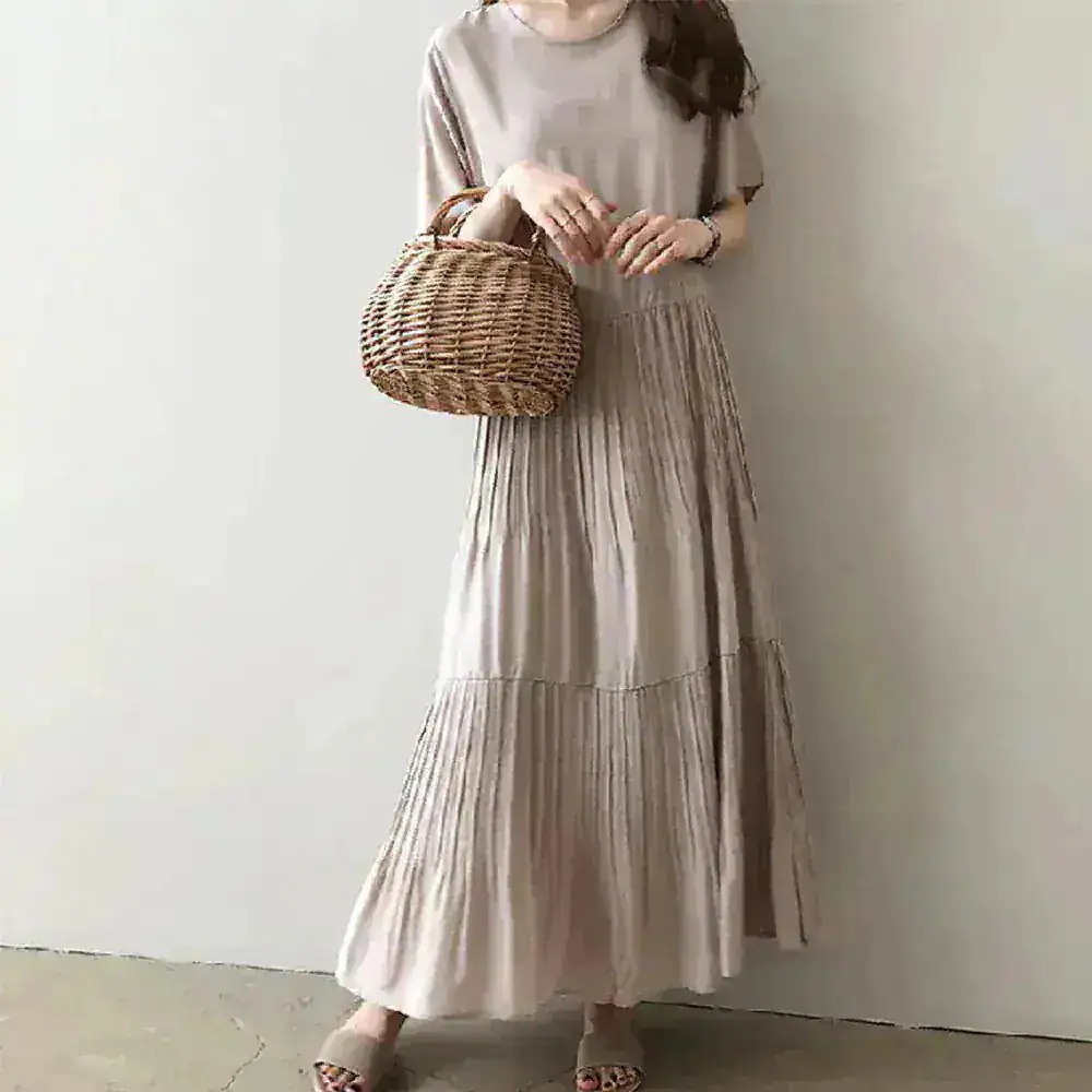 【本日限定】即納!ゆったり 揺れるトレンド プリーツ ワンピース ロングワンピース 夏 半袖 無地 プリーツ ゆったり おしゃれ 体型カバー シンプル ナチュラル 上品 大人 通