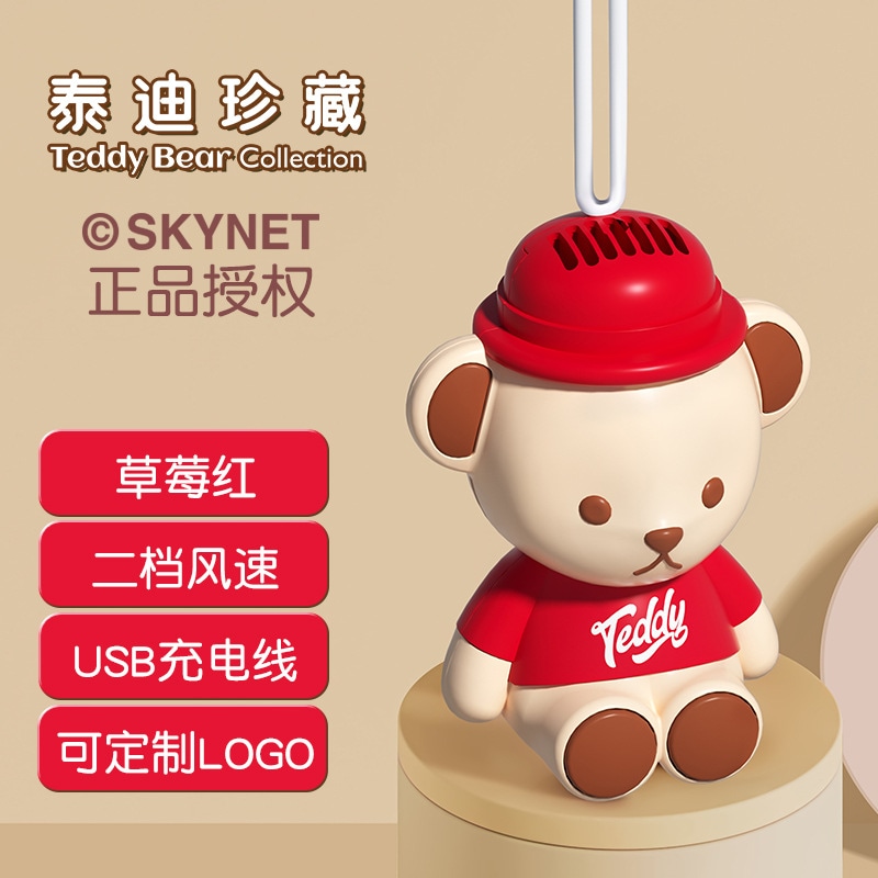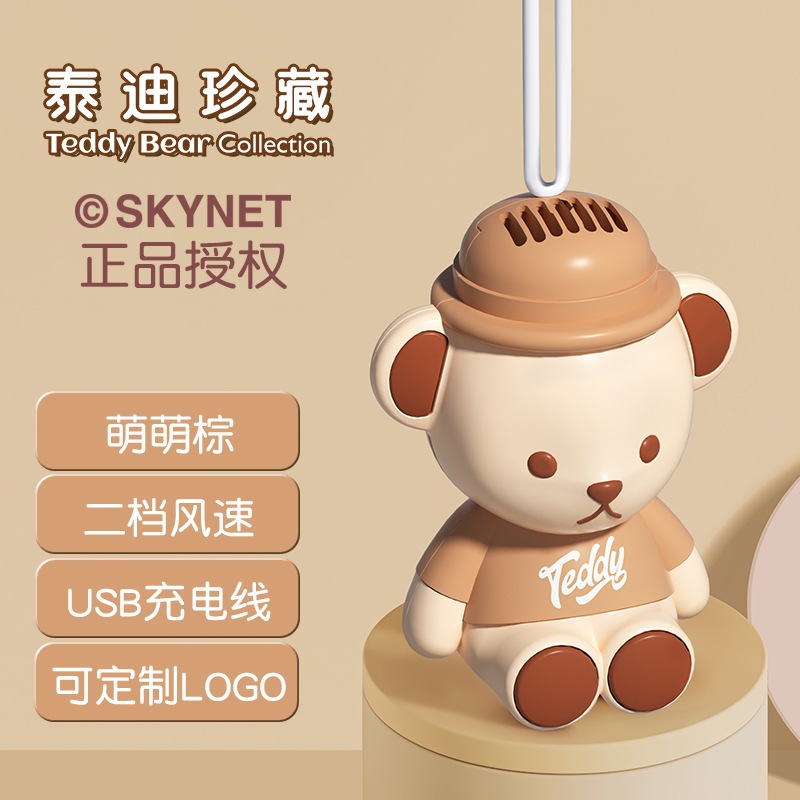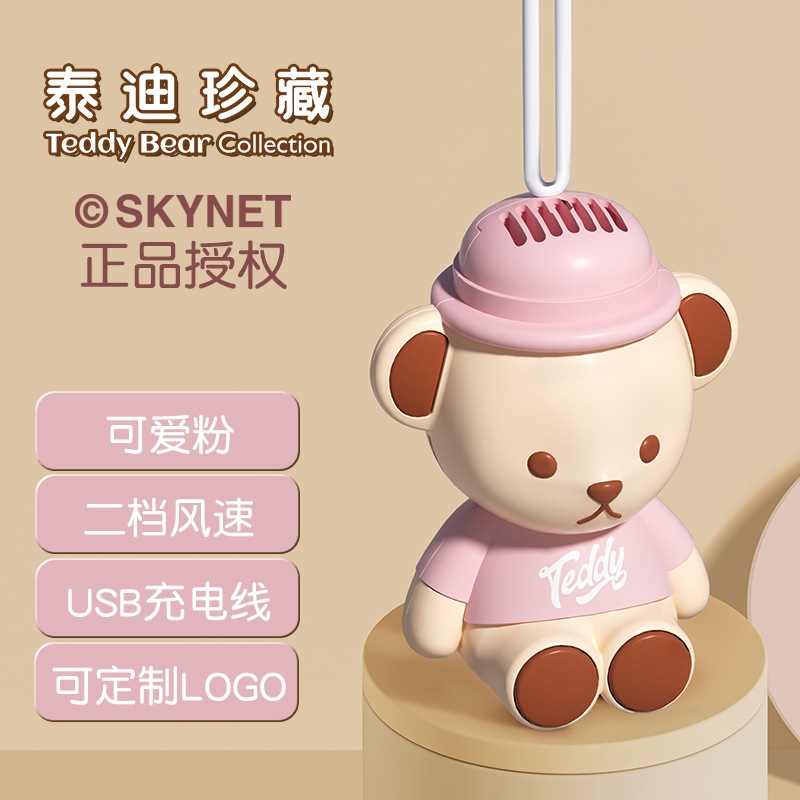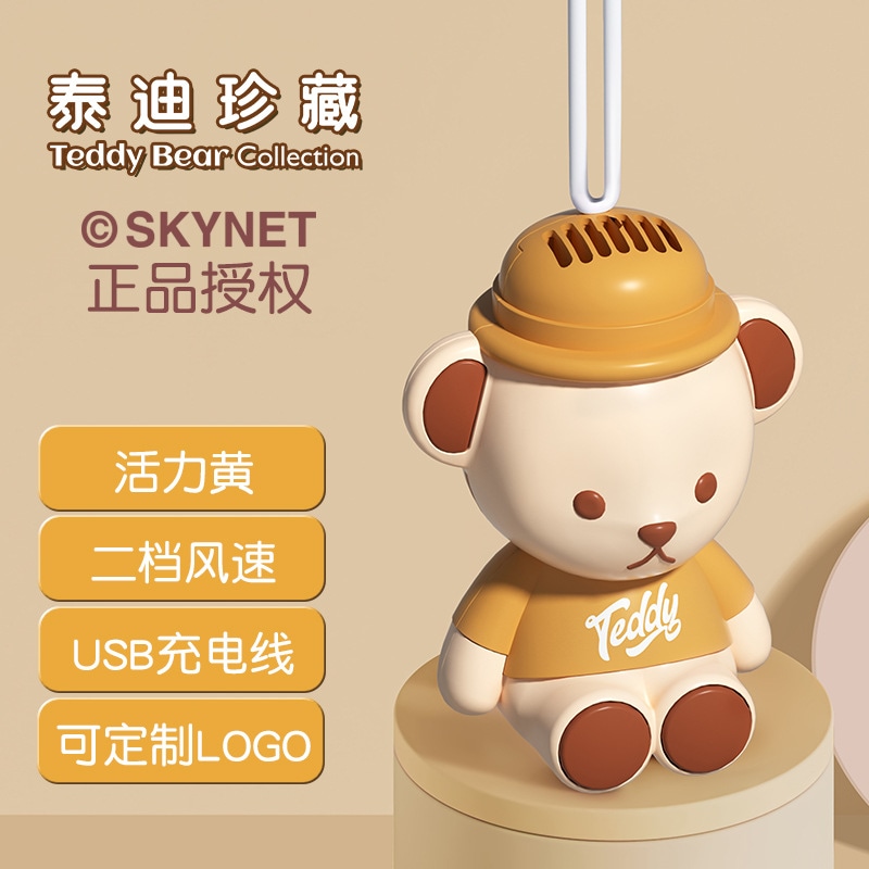 かわいいテディベアの羽根のない小さな扇風機首に長い航続女性のロープ掛けオフィスデスクトップの置物
