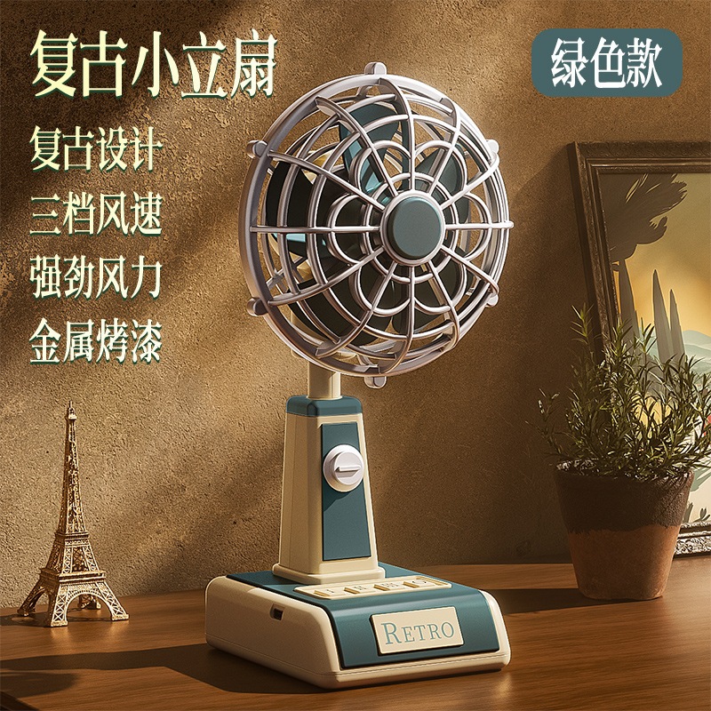 レトロ風デスクトップファンレトロ縦型ミニファンusb充電長航続代感扇風機