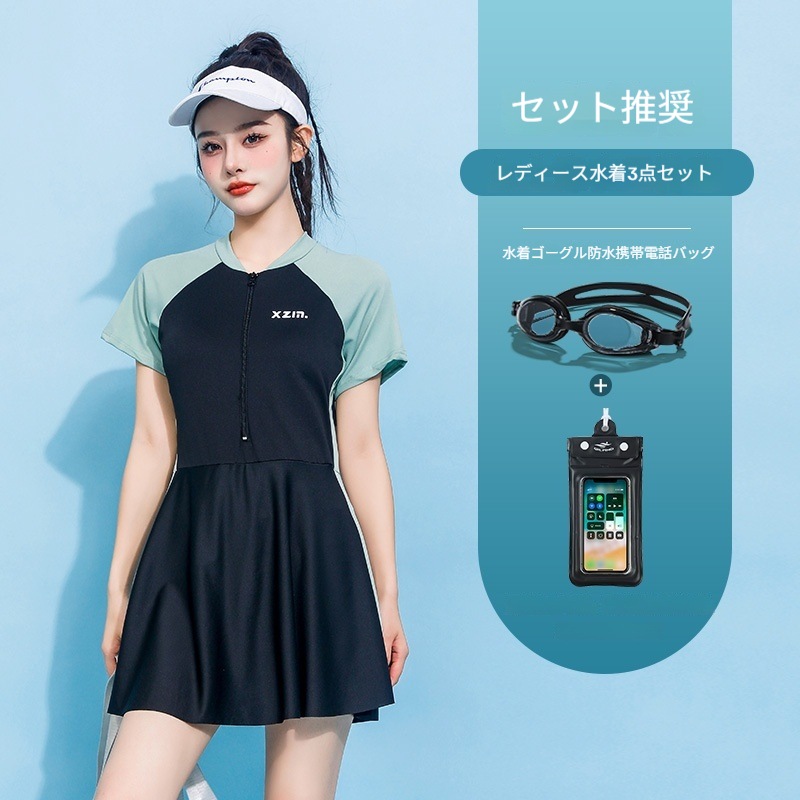 コンサバティブ 水着 レディース ワンピース型 腹部カバー シェイプアップ 温泉/プール兼用 体型カバー ゆったり着心地