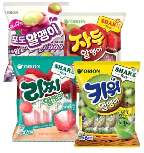 オリオン[1+1+1+1/大容量] マイグミ ブドウの実/つぶつぶゼリー4種216g(36g *6袋)/ブドウグミ/スモモグミ/リッチグミ/キウイグミ