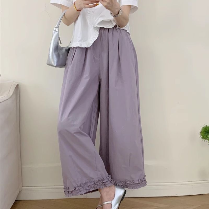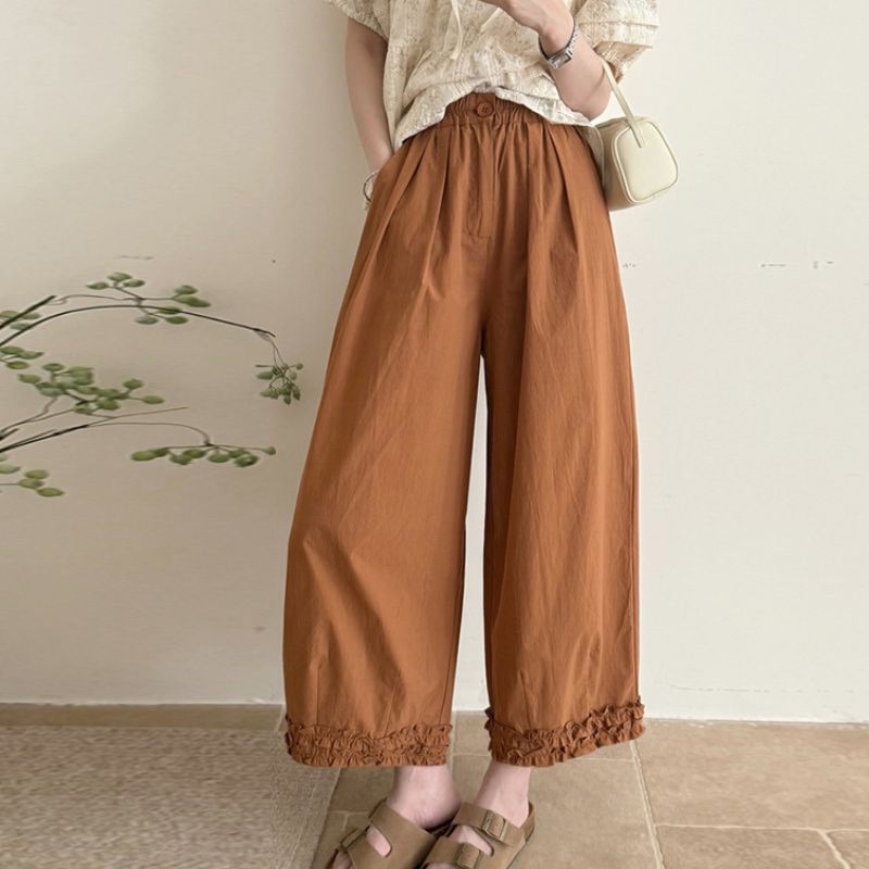 ストレートパンツ レディース 綿麻風 イージーパンツ ハイウエスト ズボン ロング丈 ウエストゴム ロングパンツ ストレート 抜け感 パンツ ポケット ワイド ボトムス シンプル カジュアル きれいめ