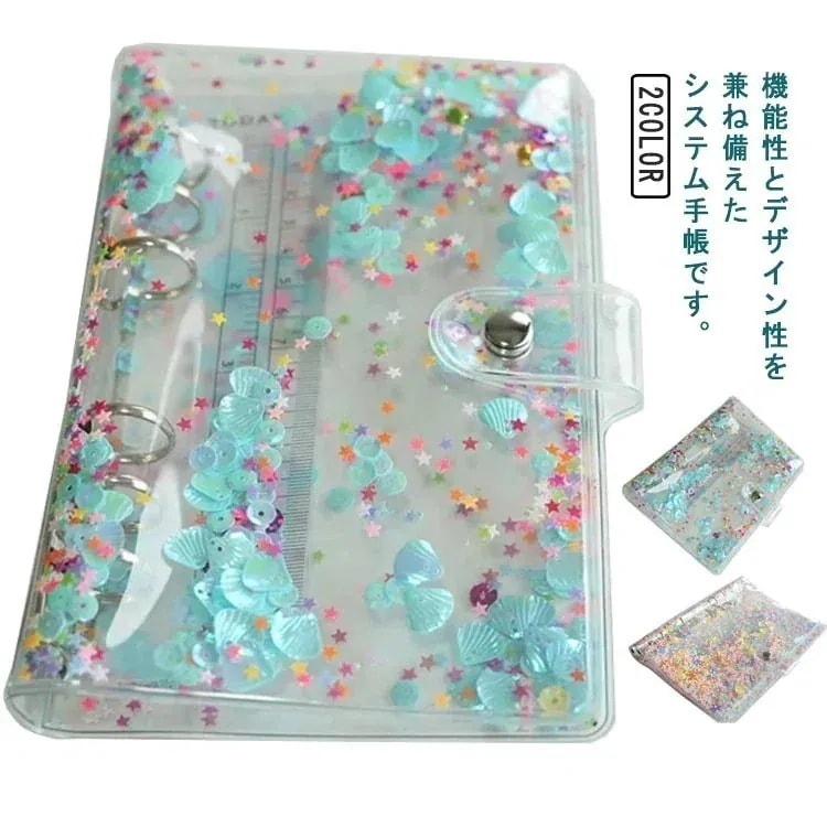 最安挑戦ノートカバー 手帳カバー システム手帳 A5 A6 ボダン付き 透明 キラキラ 軽量 手帳カバー ノート メモ 手帳 学生用 オフィス用 日記帳 6穴 リング バインダー 学生用 仕事用