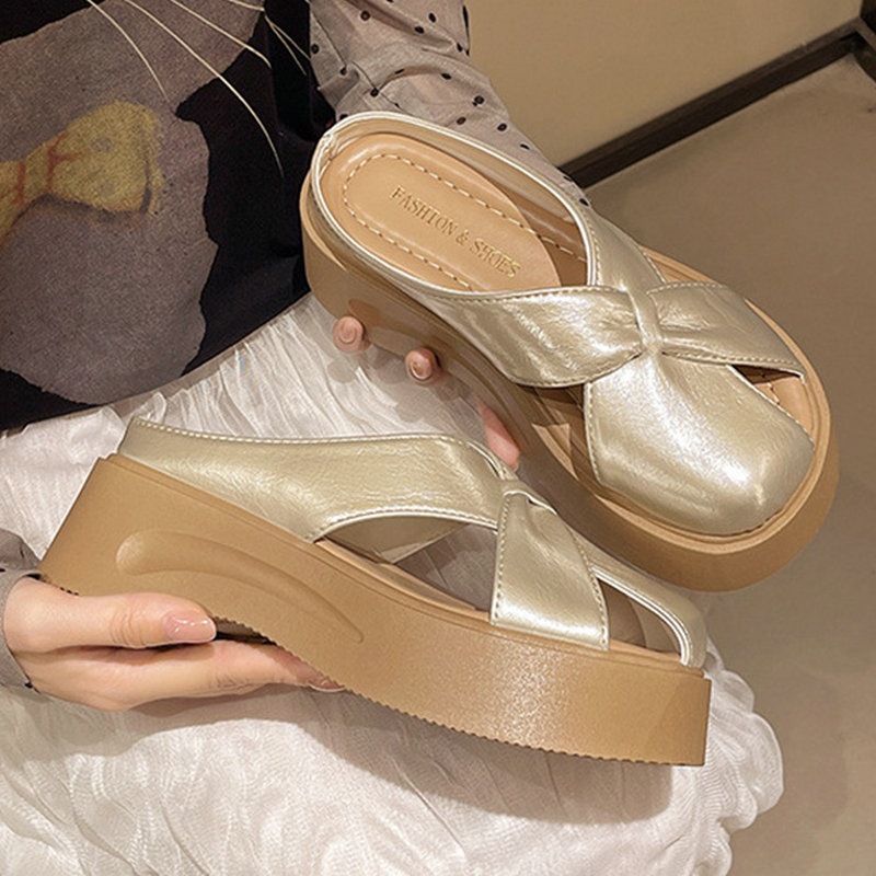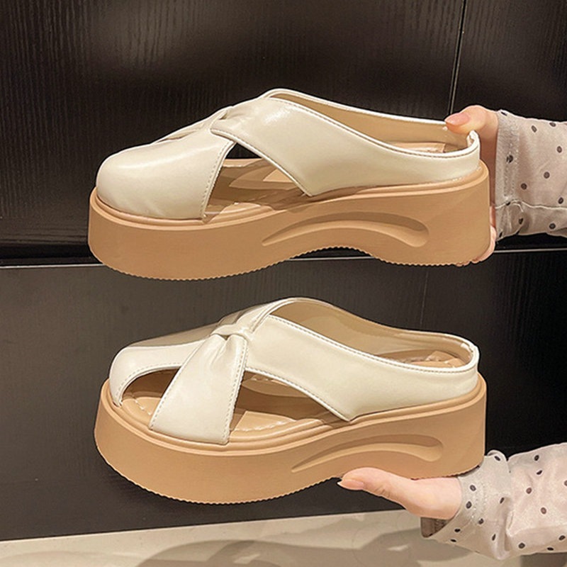 フロントクローズド ミュール サンダル 2025夏新作 5cm厚底 軽量快適 サンダル レディース 通気性 外履きOK 足幅自由 スリッパ 脚長効果