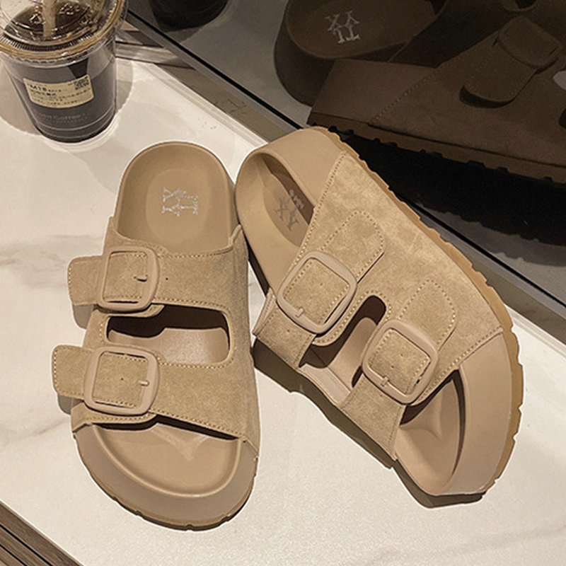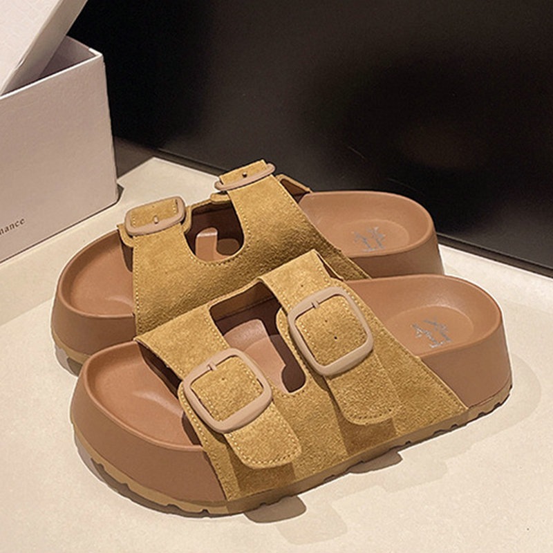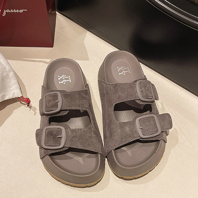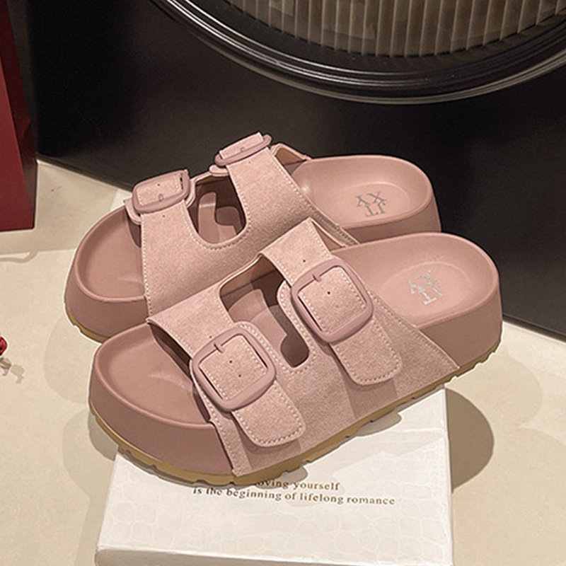 オープントゥ ビーチサンダル 2025夏新作 4.5cm厚底 メタルバックル 外履きOK 足痩せ効果 4色展開 軽量 滑り止め 厚底 スリッパ サンダル 脚長効果