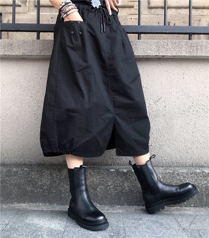 バルーンスカート 春 スキニー 半身浴スカート ブラック スプリット ポッドスカート Aライン ミディスカート