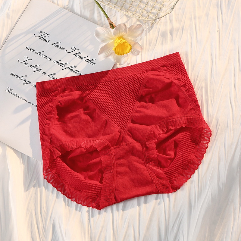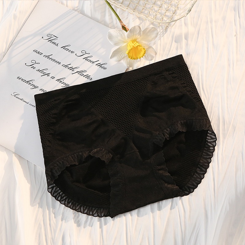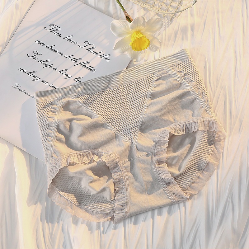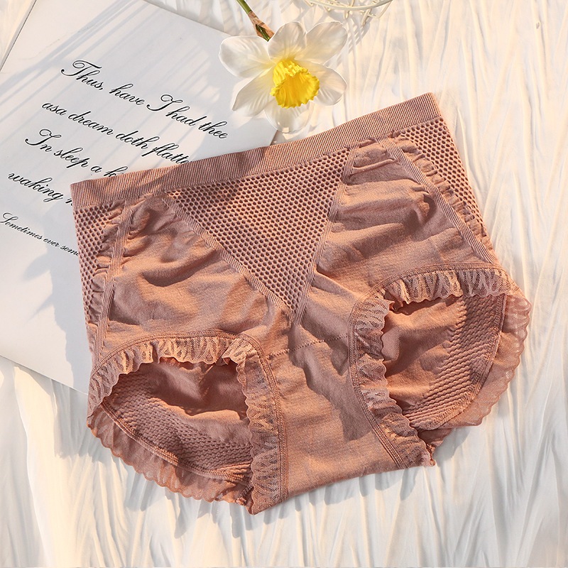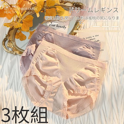 3枚組 ピーチヒップ ミドルライズ シームレスパンティ レディース 蜂の巣編み レース縁 綿裾 通気性 ヒップアップ