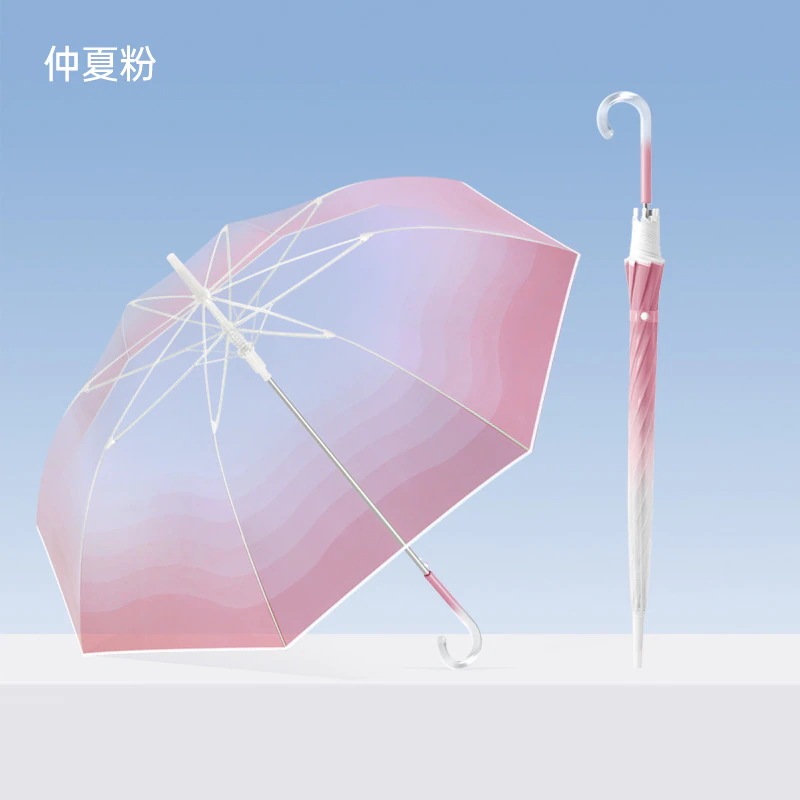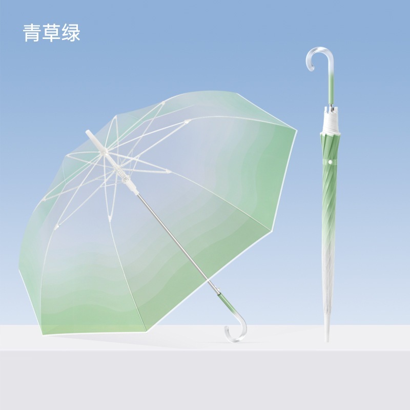 日傘 uvカット グラデーション透明傘女性曲げフックハンドル傘小型爽やか長柄傘直棒傘