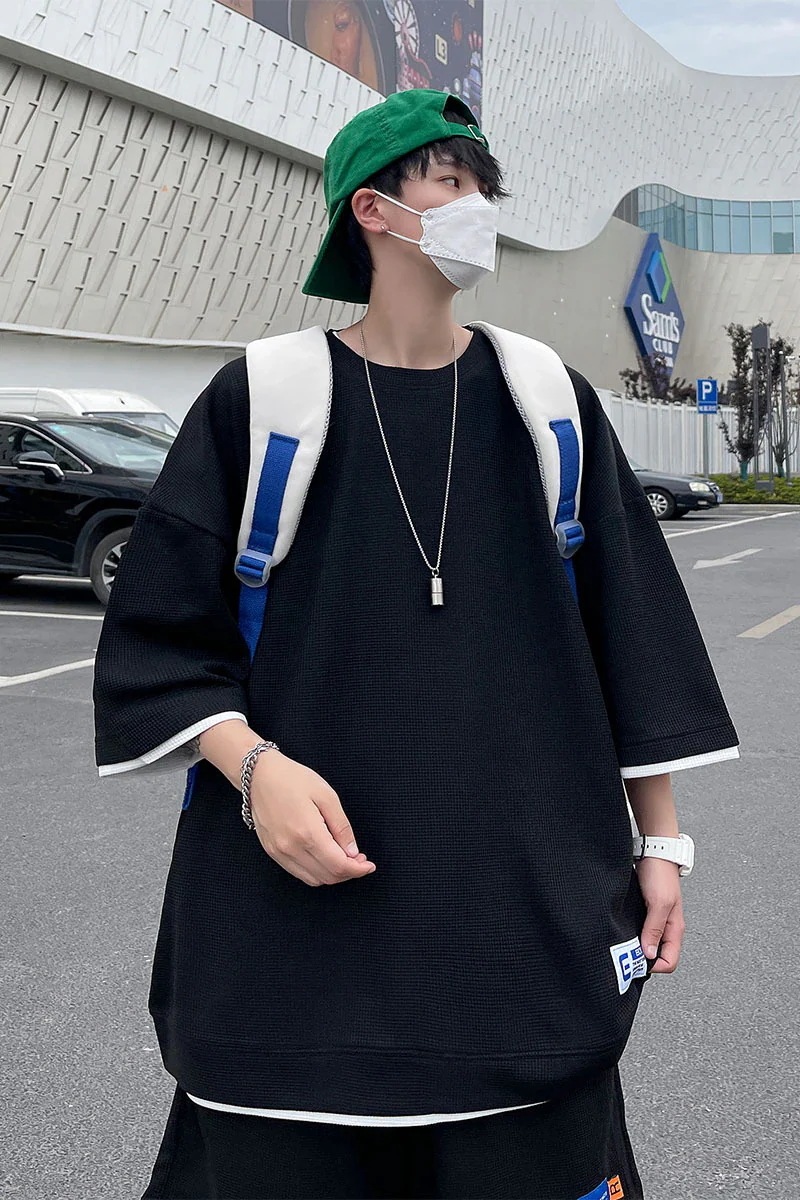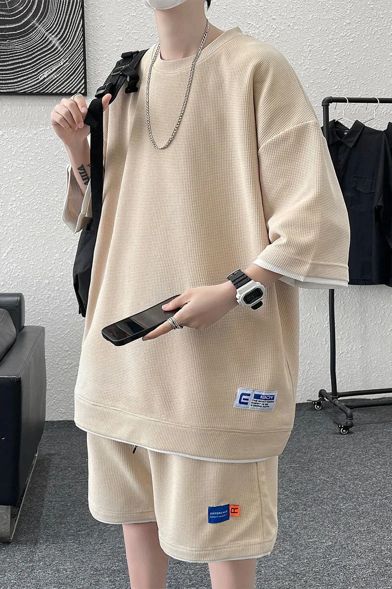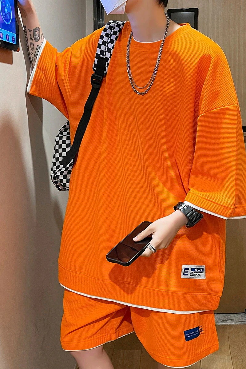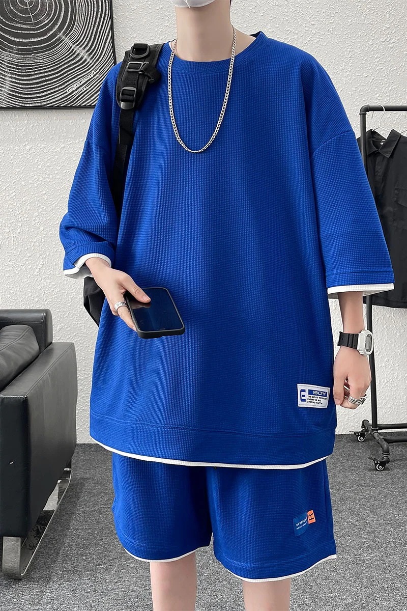 メンズ セットアップ ワッフルスーツ 夏 新作 半袖 ショートパンツ ゆったり カジュアル スポーツスーツ