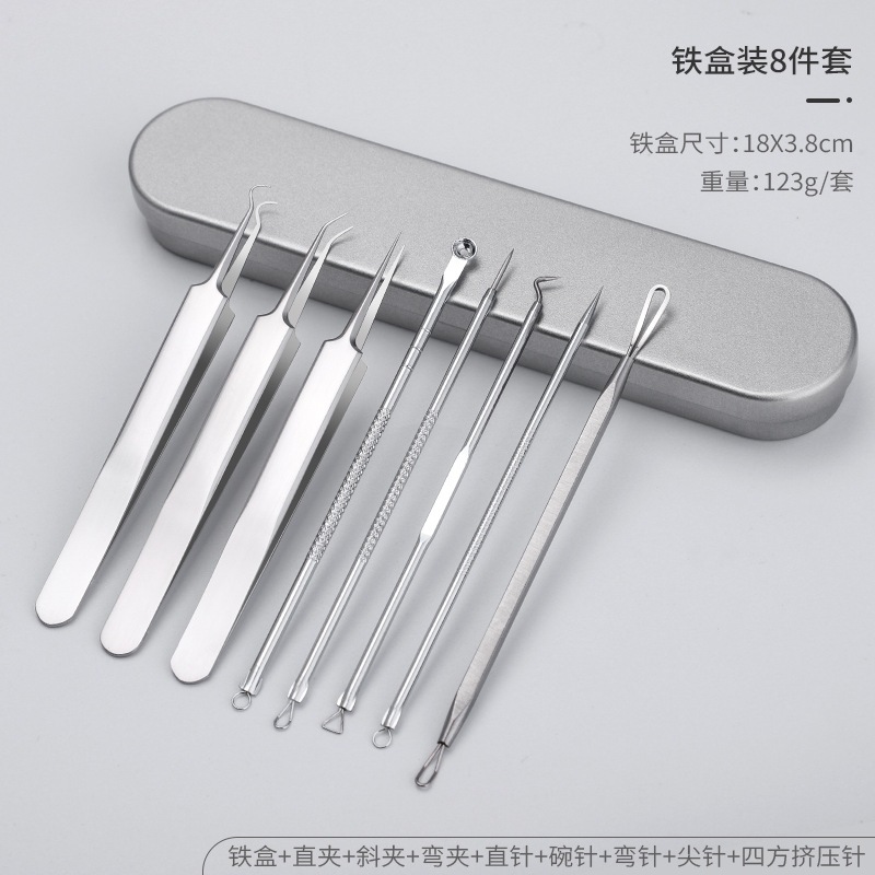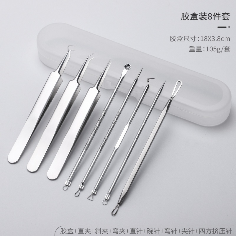 早い者勝ち 角栓 ピンセット コメドプッシャー [ 専用8本セット 超細の先端は幅01mm]毛抜き 角栓ニキビ黒ずみ取り いちご鼻ケア にきび押し出し ニキビ潰し 角栓除去粉瘤ニード角栓 ピンセット