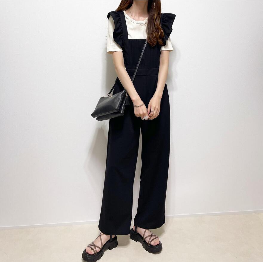 韓国ファッション 型カバー ゆったりサロペットオールインワンキャミオールインワンストレートロングパンツリネンパンツ