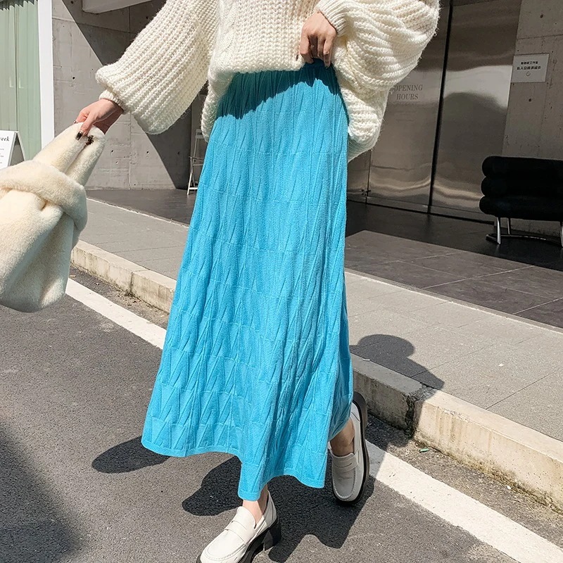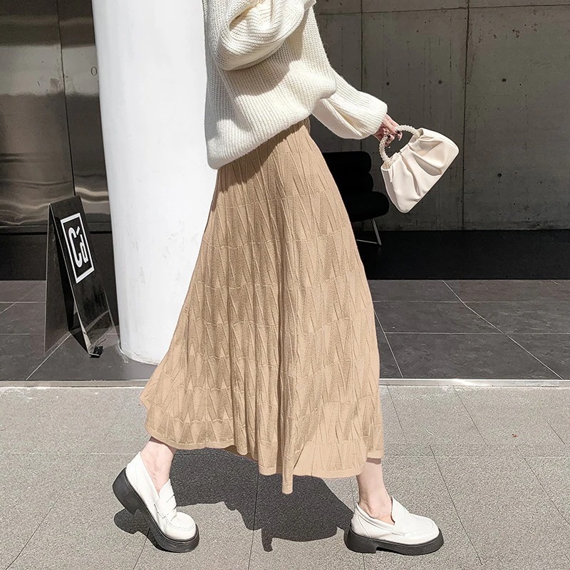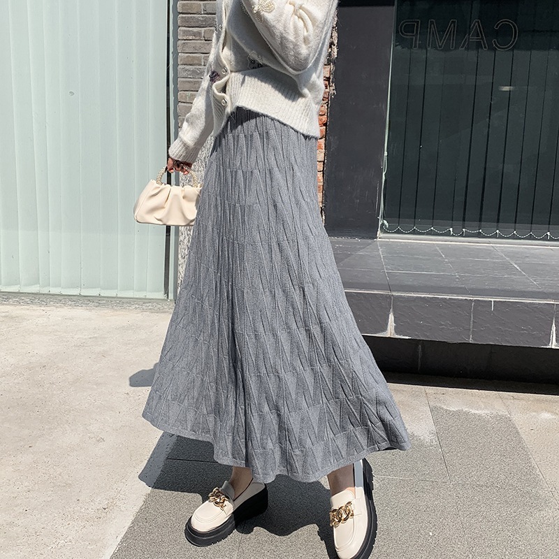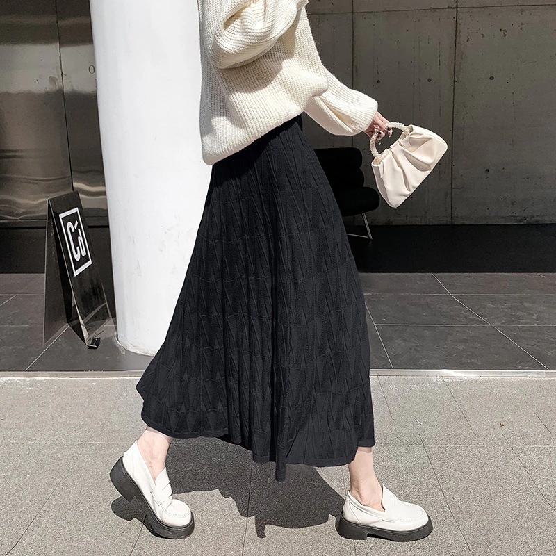 百掛け 流行り 子丈の毛糸A字大振り プリーツスカート スカート タイトスカート スカート 可愛い ロングスカート ハイウエスト
