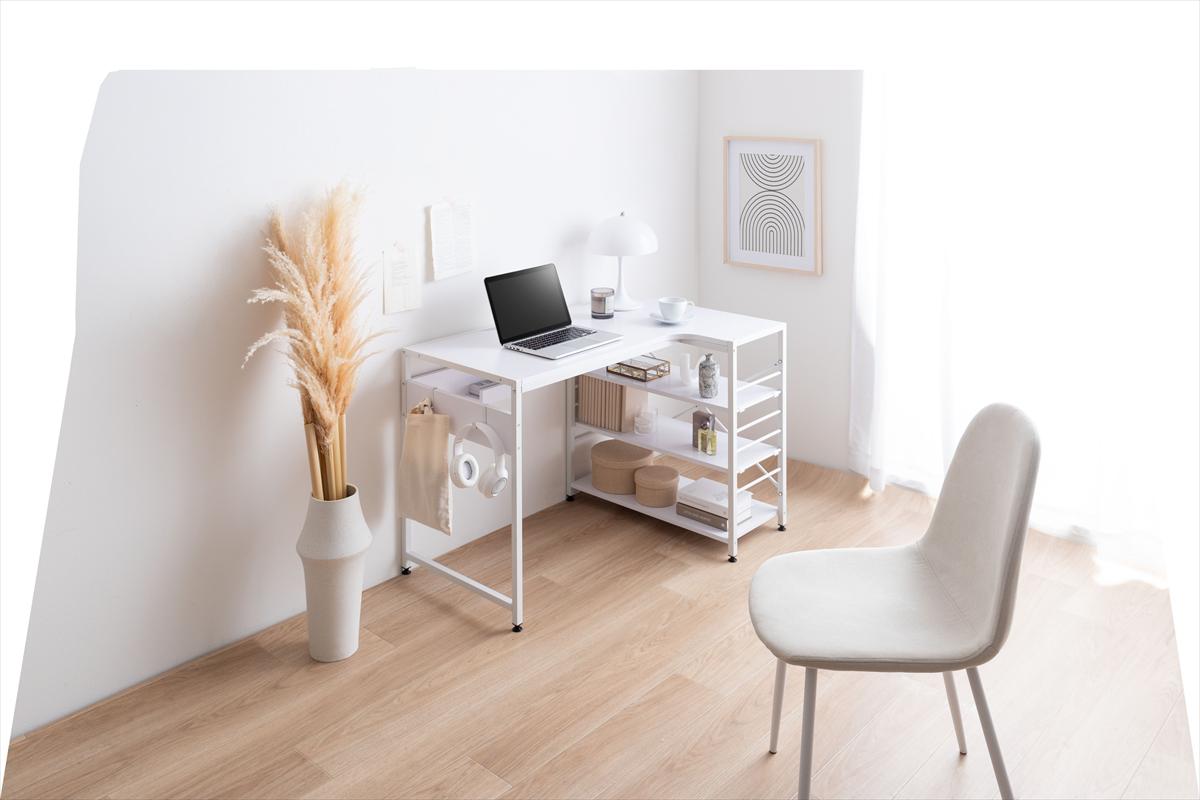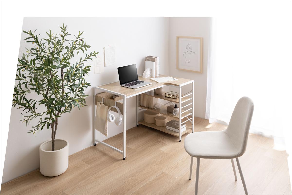デスク 机 おしゃれ ラック L字 棚 北欧モダン 木目 コーナー ワークステーション