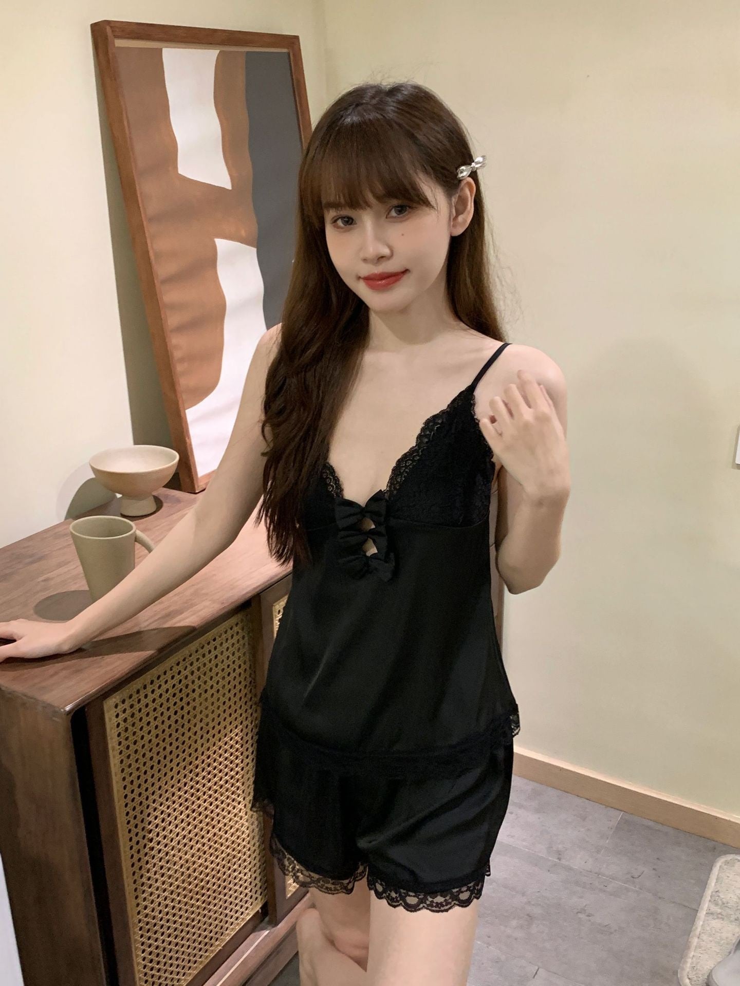 夏 ルームウェア パジャマ 2点セット vネックキャミソール ショートパンツ セクシー 新作 ルームウェアセットアップ レディース