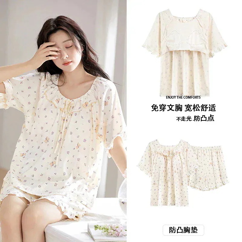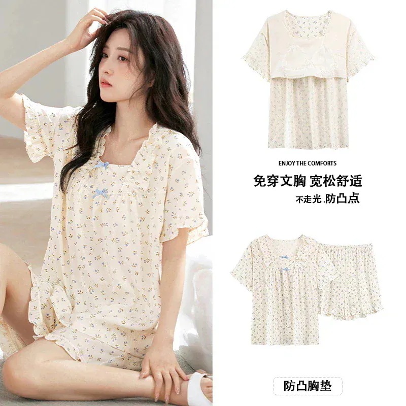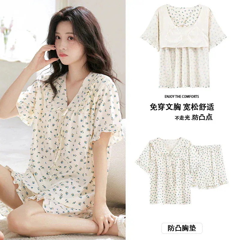 夏 ルームウェア パジャマ 半袖パジャマ ショートパンツ カップ付き 花柄 大きいサイズ 可愛 薄手 ルームウェアセットアップ レディース