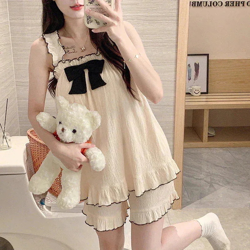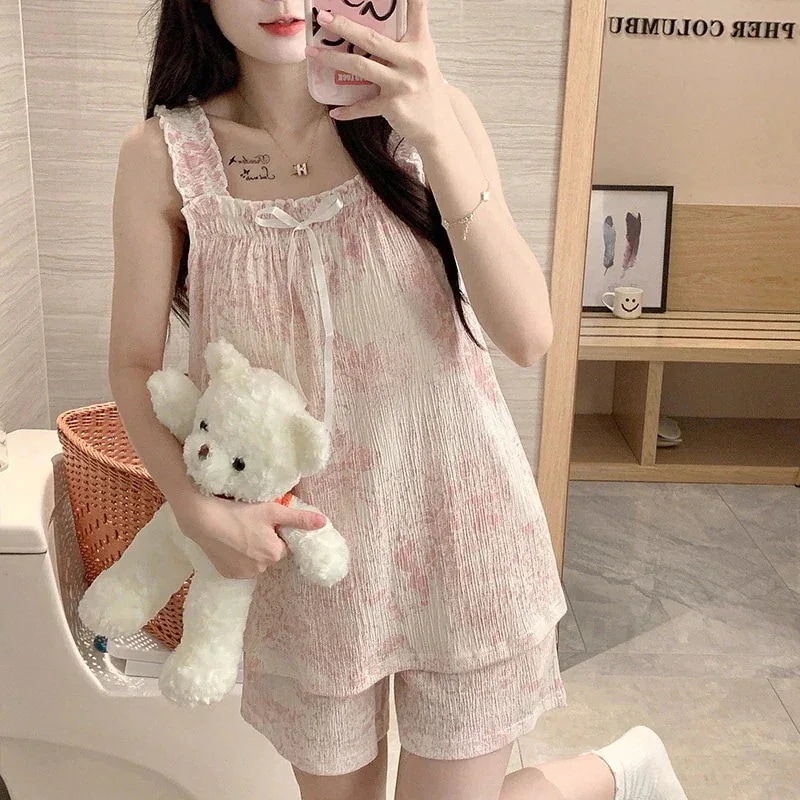 夏 ルームウェア パジャマ カップ付きキャミソール ノースリーブ ショートパンツ 薄手 ルームウェアセットアップ レディース