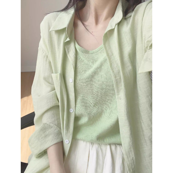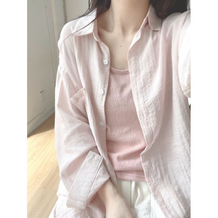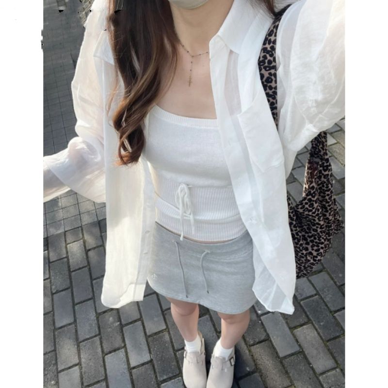 フランスのだるい日よけ薄手の白いシャツ女性夏のゆったりとした外付け長袖シャツの上着韓国カジュアルコート